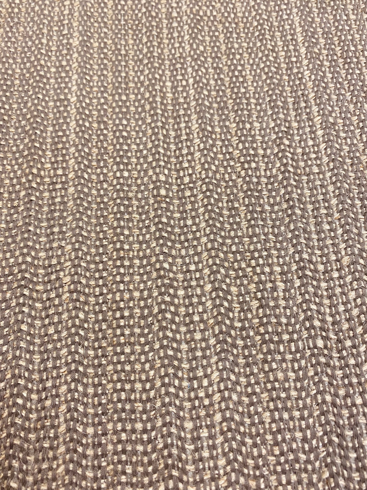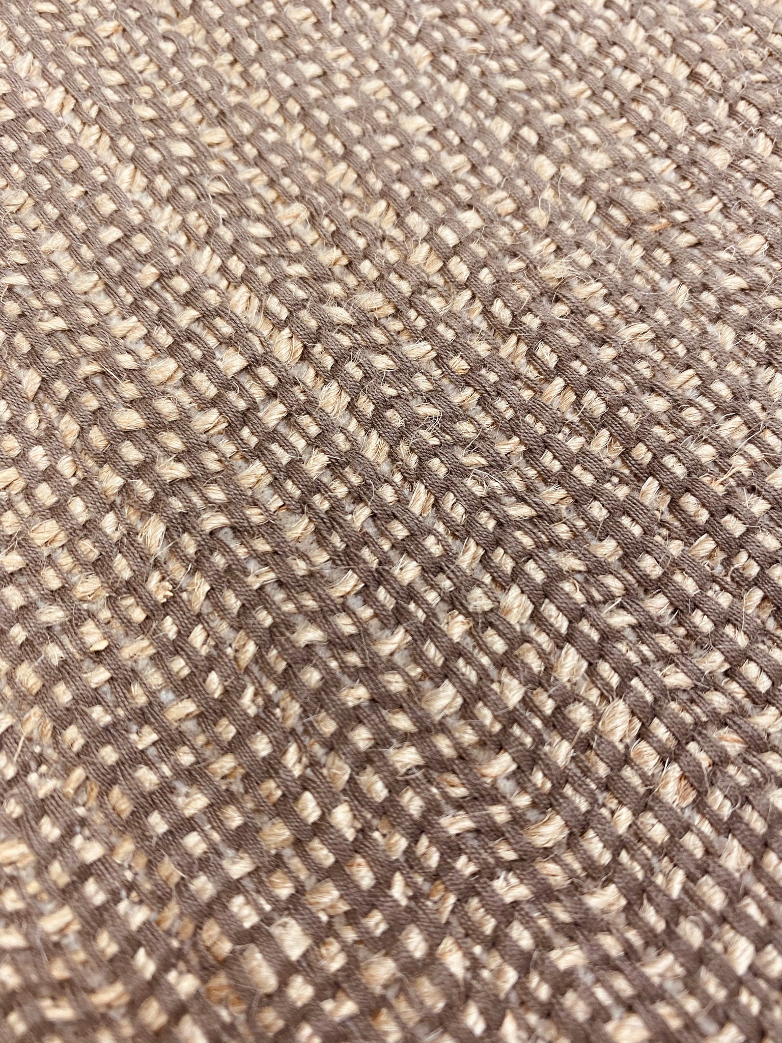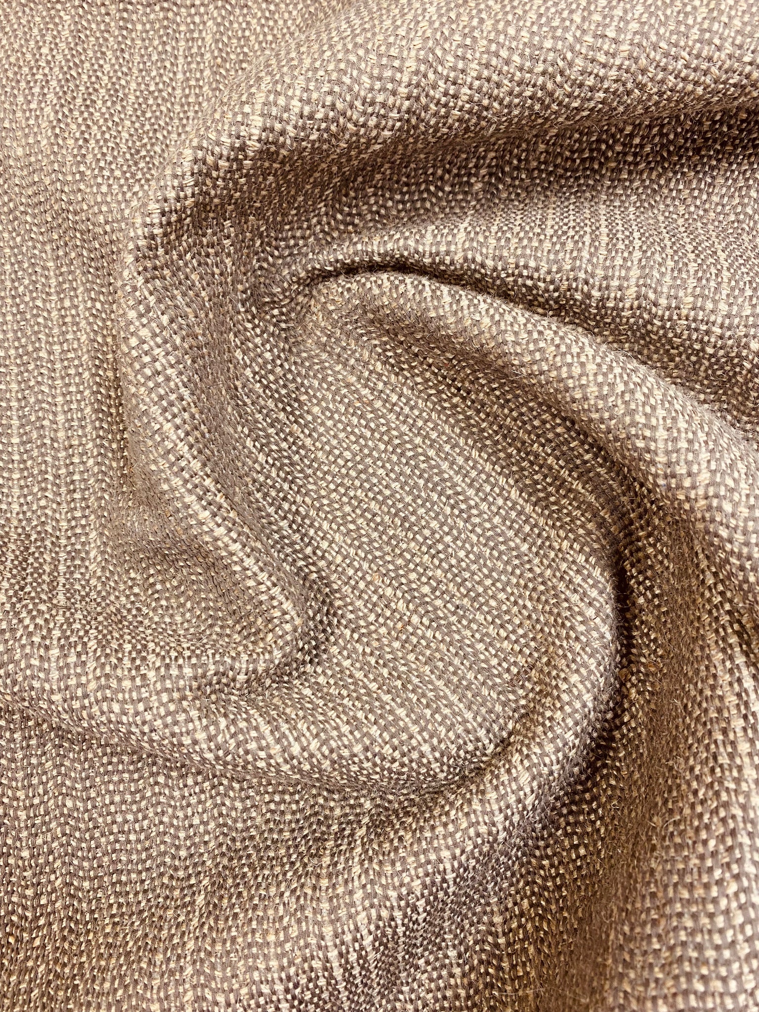 56" wide designer reversible heavy duty MCM Mid Century Modern flax woven tweed chenille upholstery fabric in brown and taupe. Price is per yard. Let us know if you need more than what is available in our store.