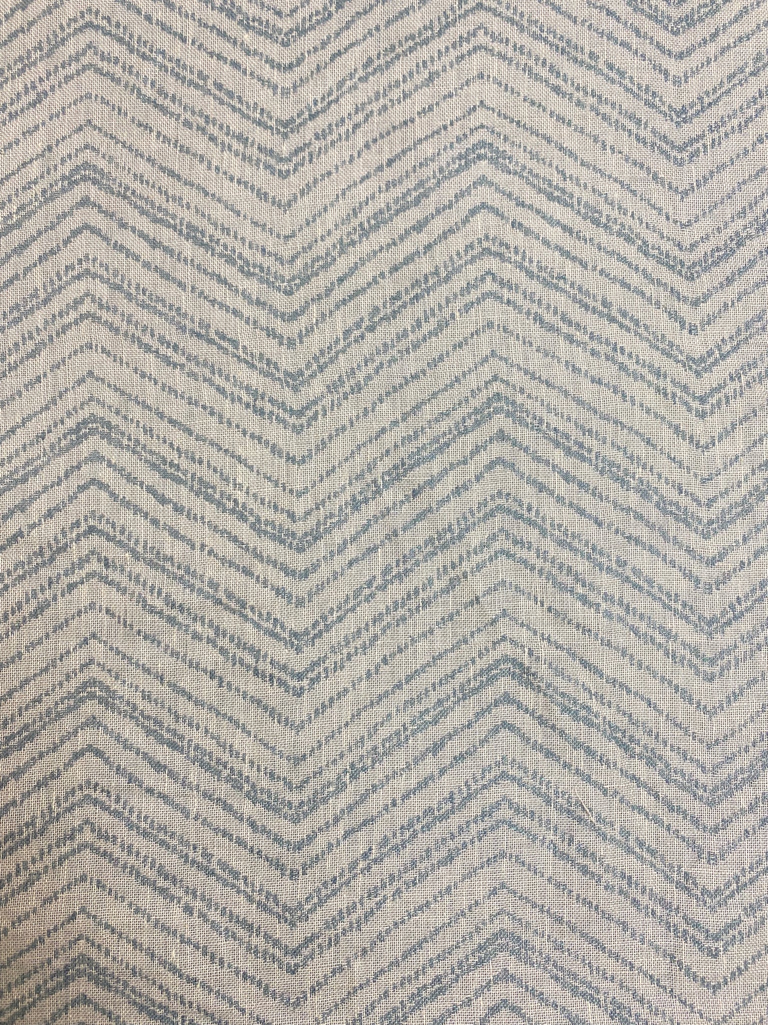 58" wide designer reversible linen chevron drapery fabric in steel blue and grey. Price is per yard. Let us know if you need more than what is available in our store.