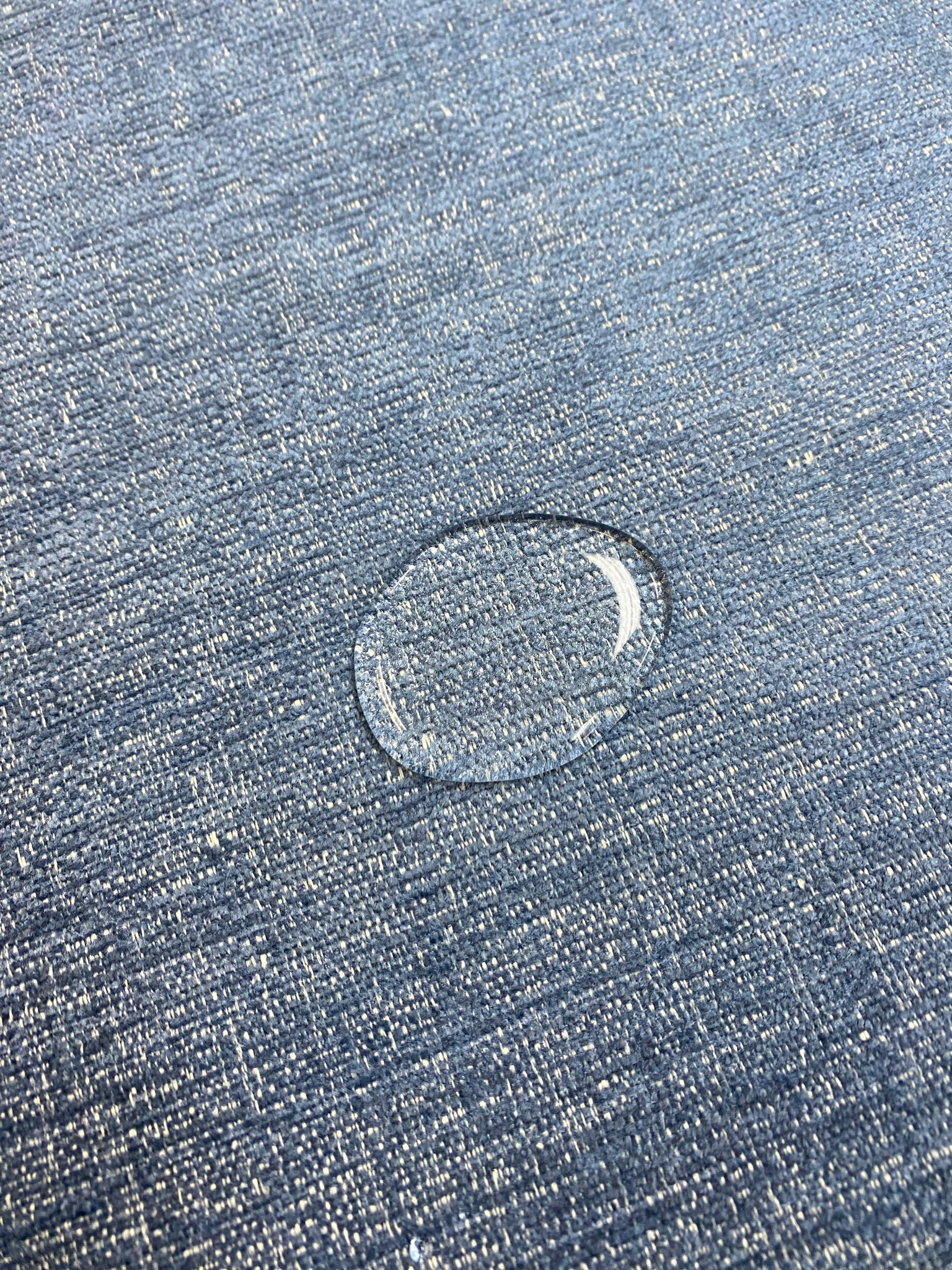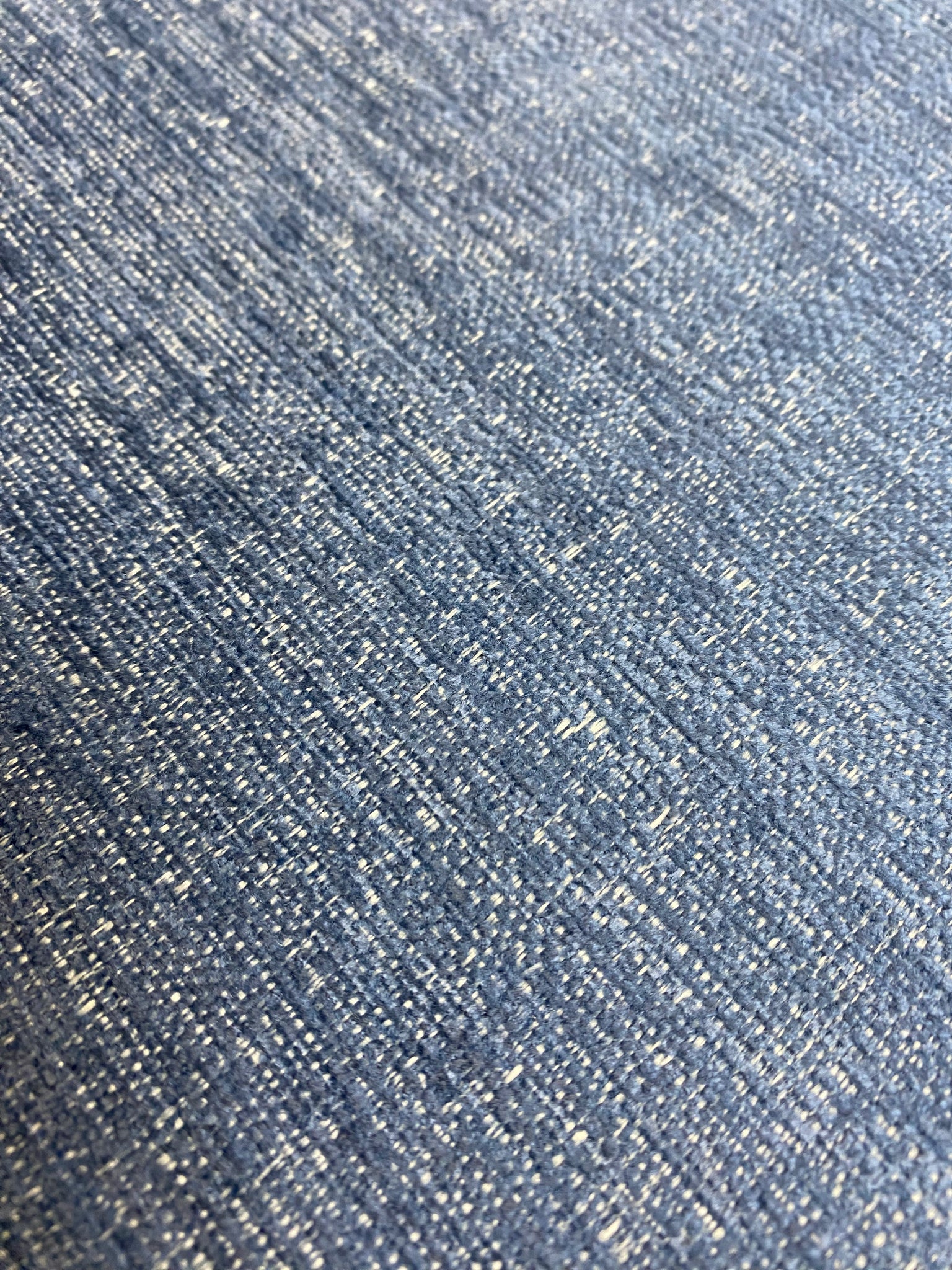 58" wide designer water stain resistant MCM Mid Century Modern chenille water & stain resistant upholstery fabric in French blue. Price is per yard. Let us know if you need more than what is available in our store.