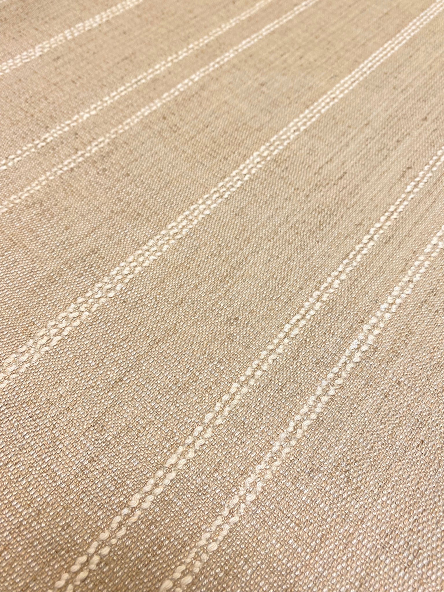 60" wide linen viscose cotton nautical stripe water & stain resistant upholstery drapery fabric in sage beige and cream. Price is per yard. Let us know if you need more than what is available in our store.