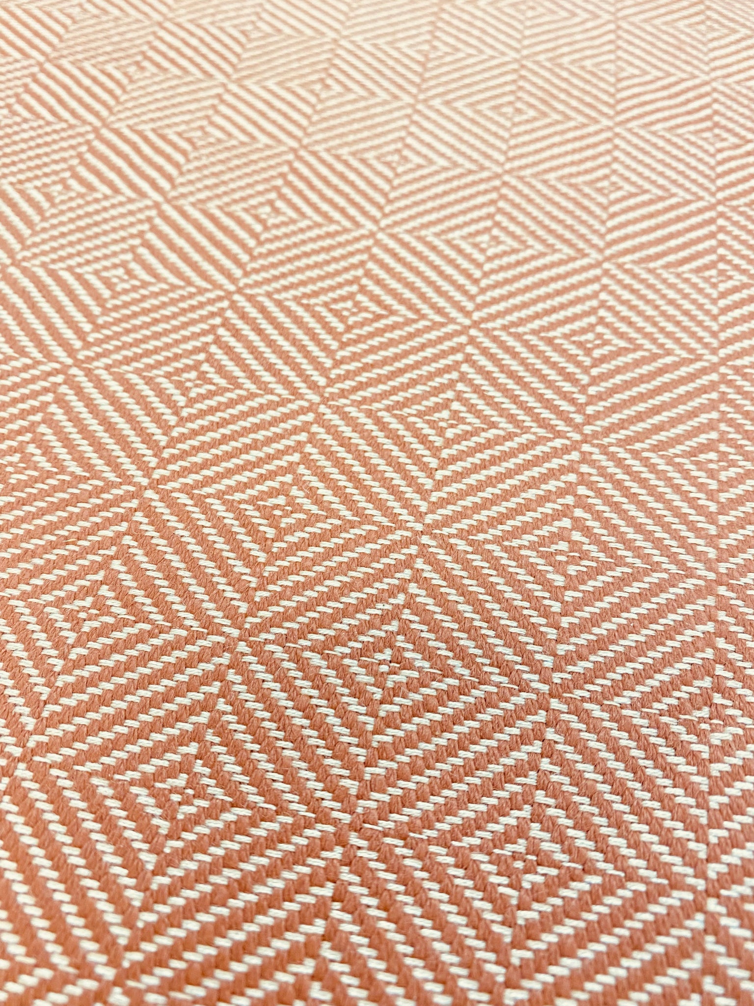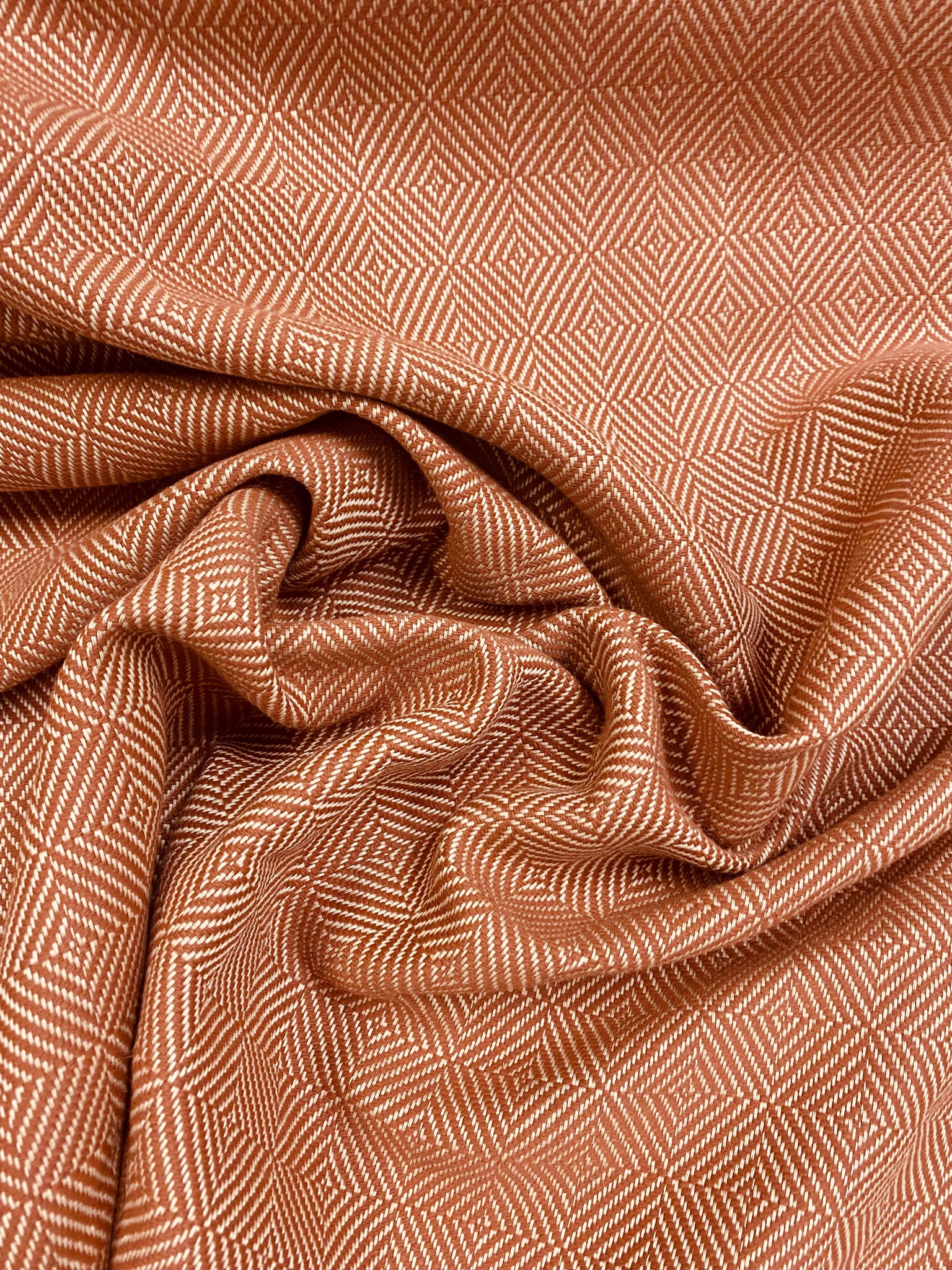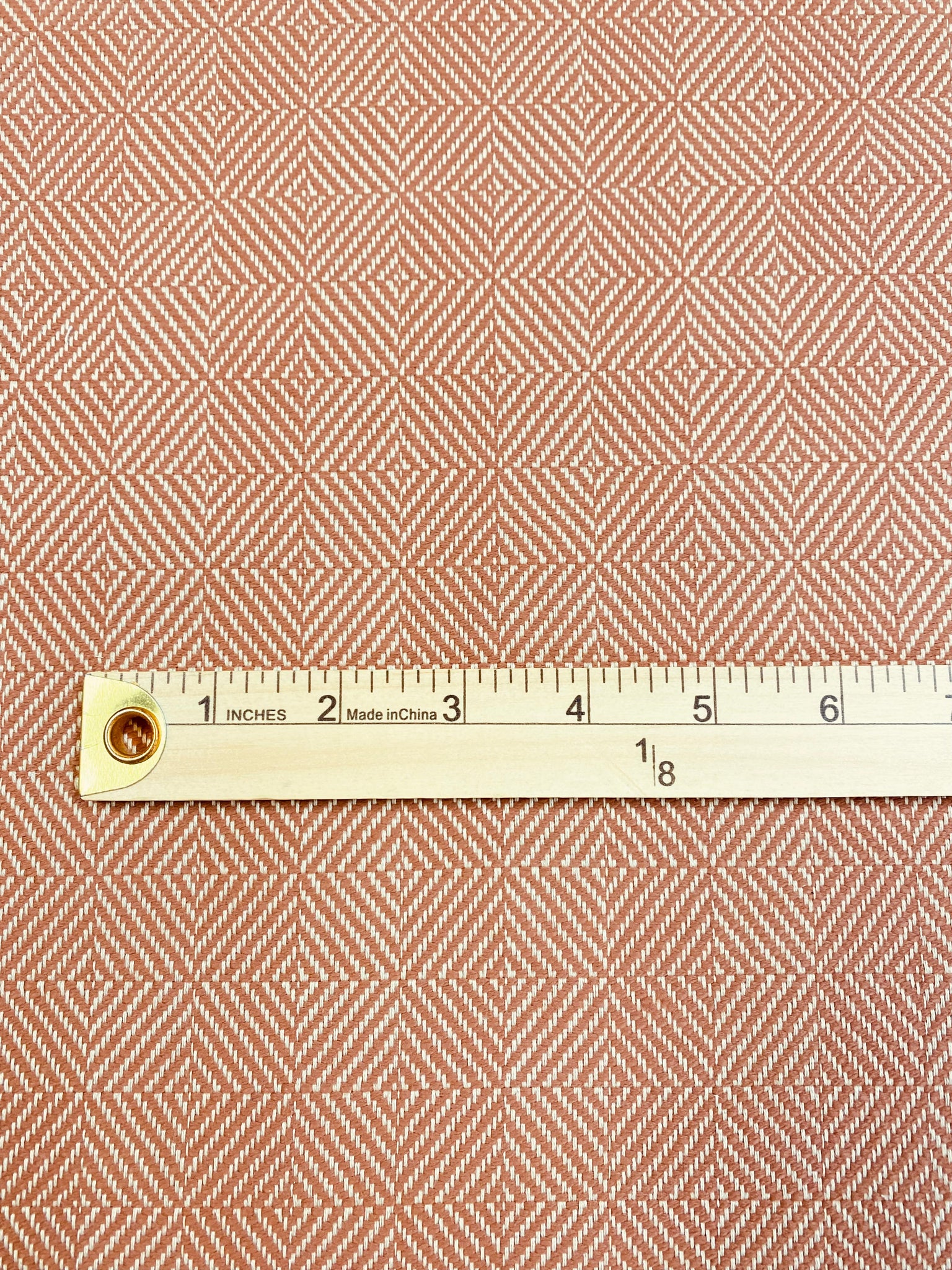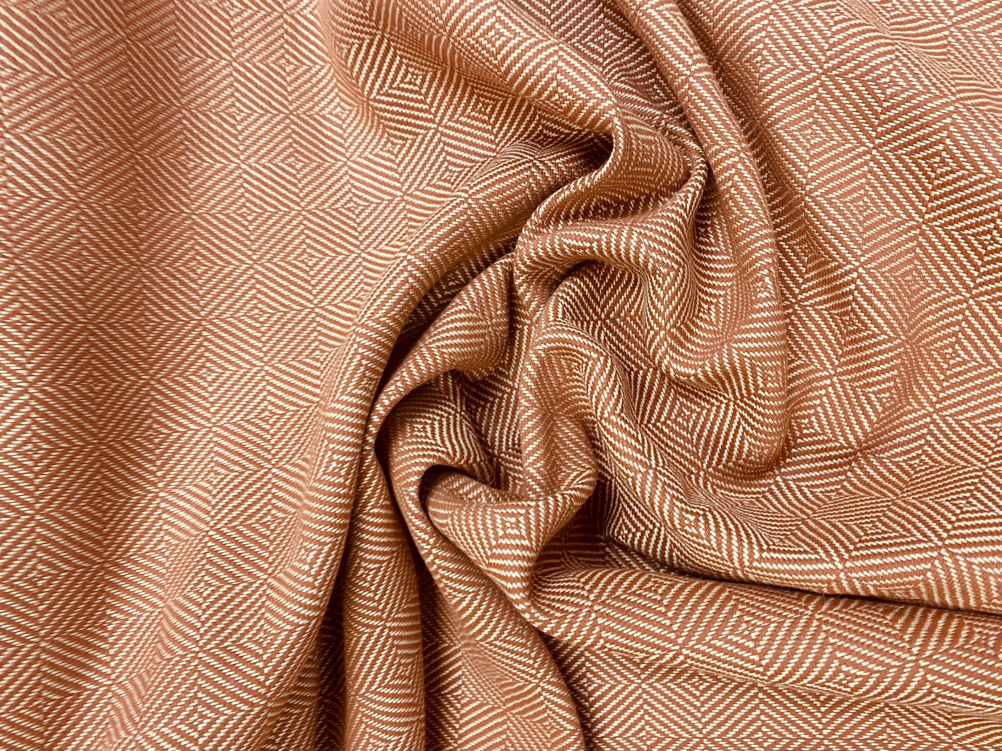 1 yard and 28” length and 54" wide Perennials Chelsea Square Sunset Rose Tarlow water resistant tweed MCM mid century modern geometric upholstery fabric in copper brown and beige.