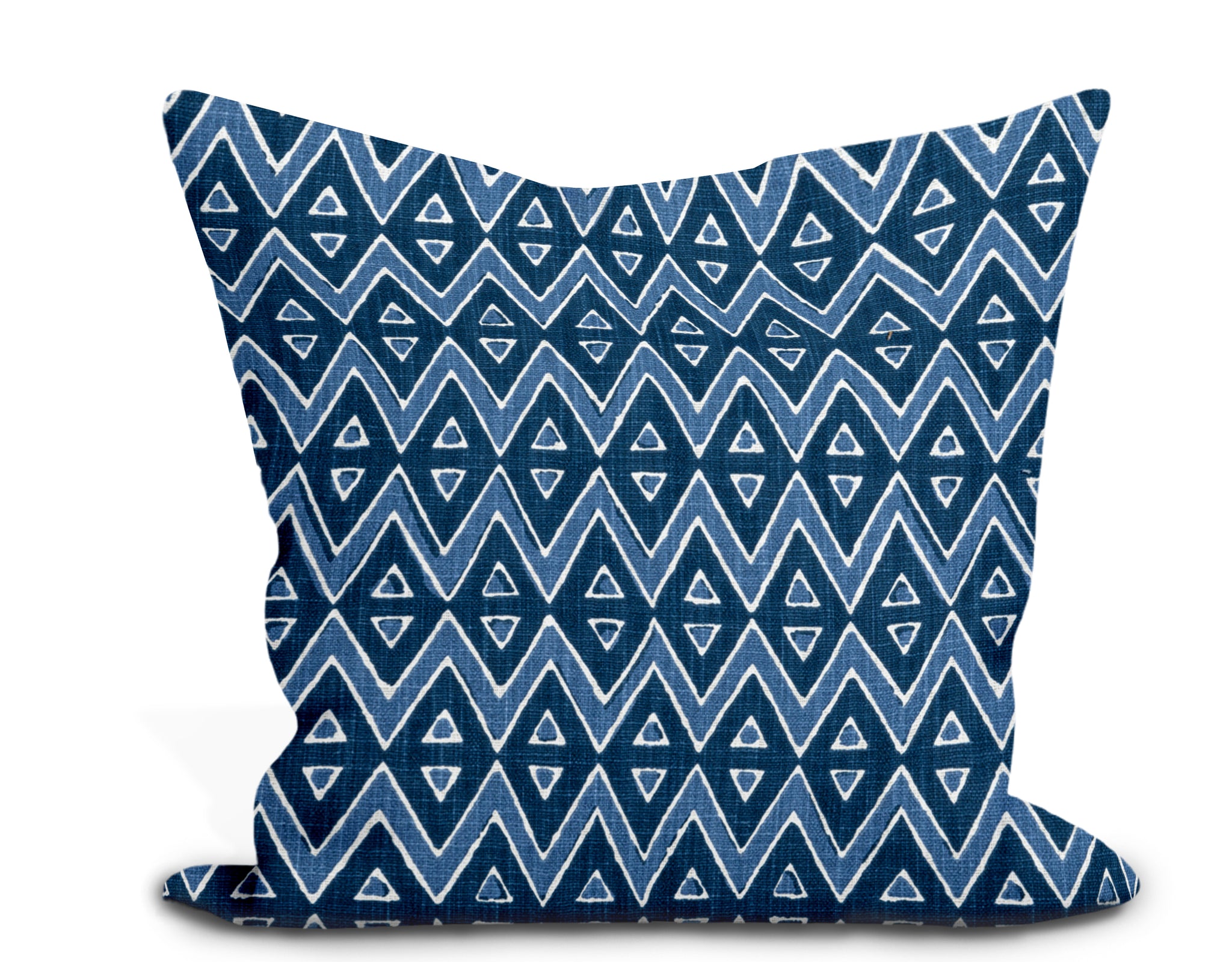 Custom made pillow cover in abstract geometric Thibaut's Tiburon in navy blue fabric. Please choose size and other custom options from the drop down menu. Price is per single pillow cover unless purchased with insert.