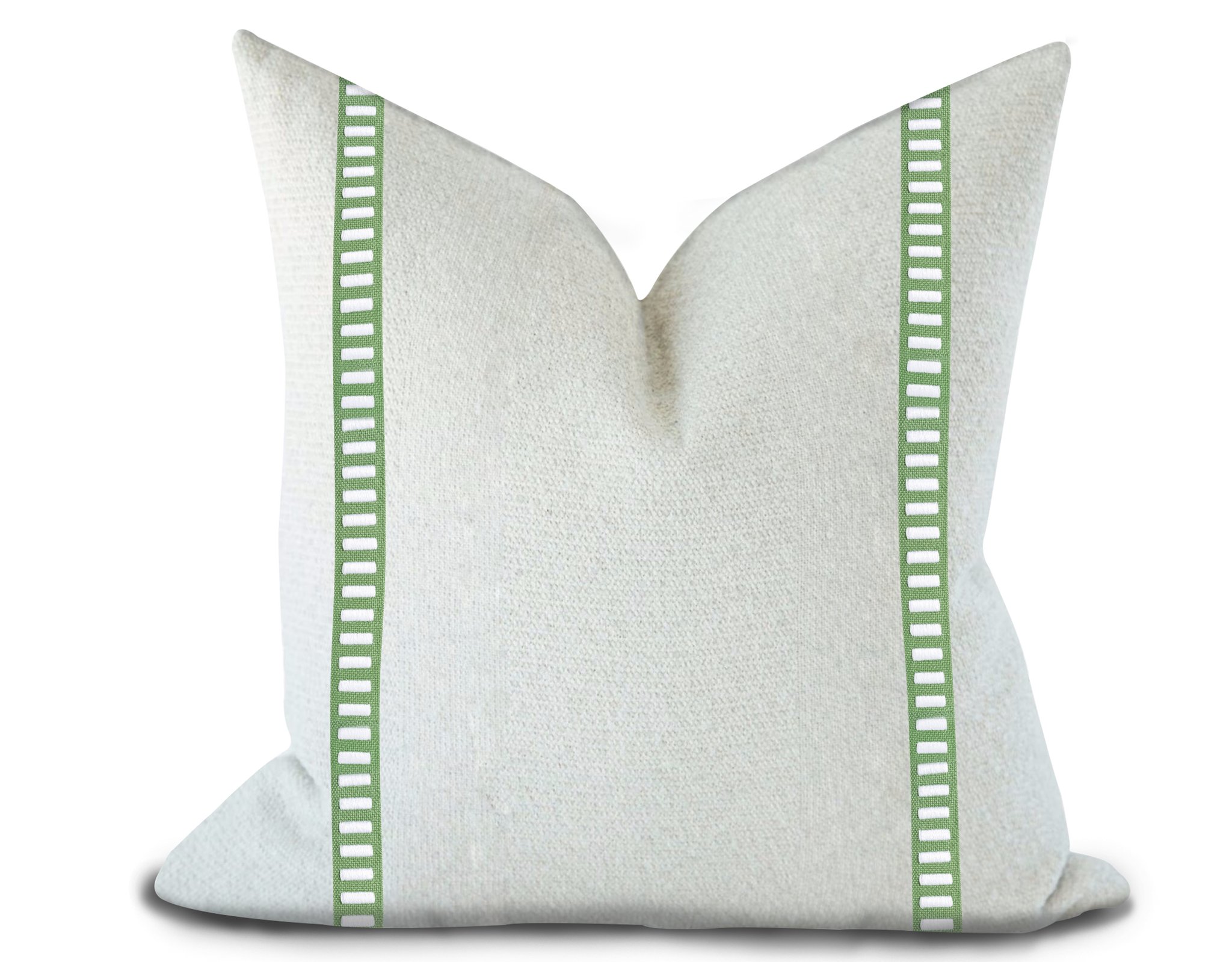 Custom Made Pillow Cover with Thibaut Dash Tape in White on Spring / Self-Piping