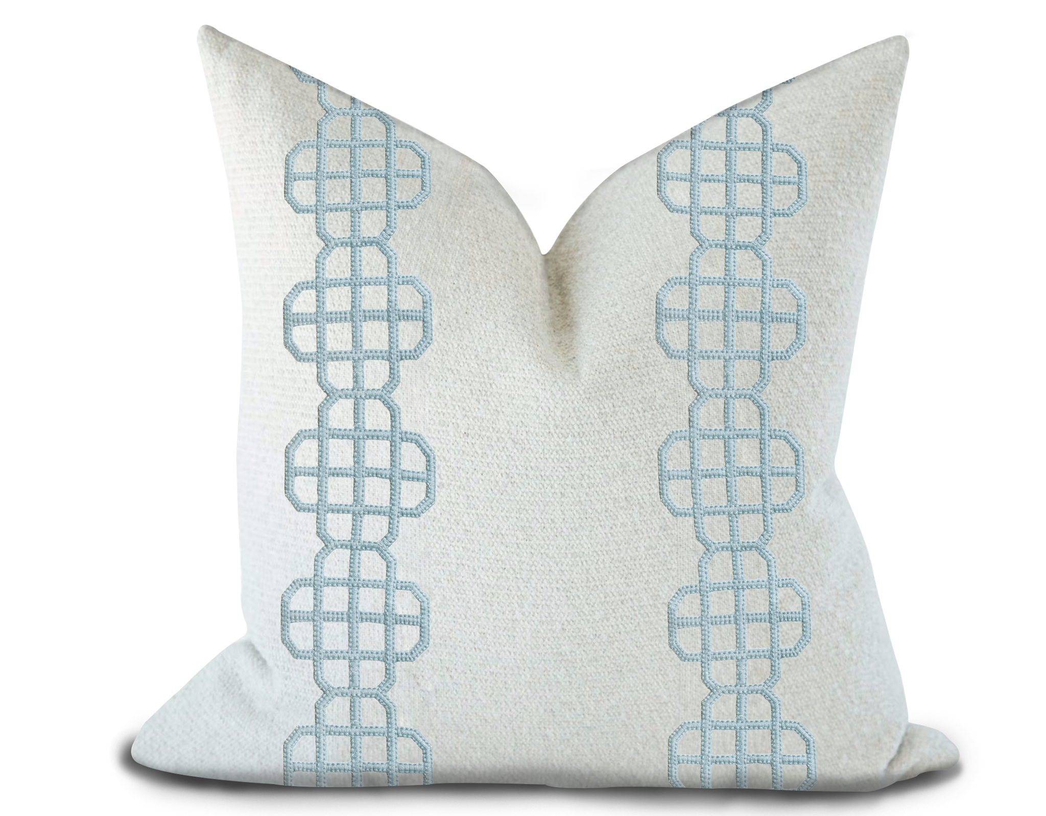 (Copy) Custom Made Pillow Cover with Thibaut Fret Applique Tape in Powder / Self-Piping