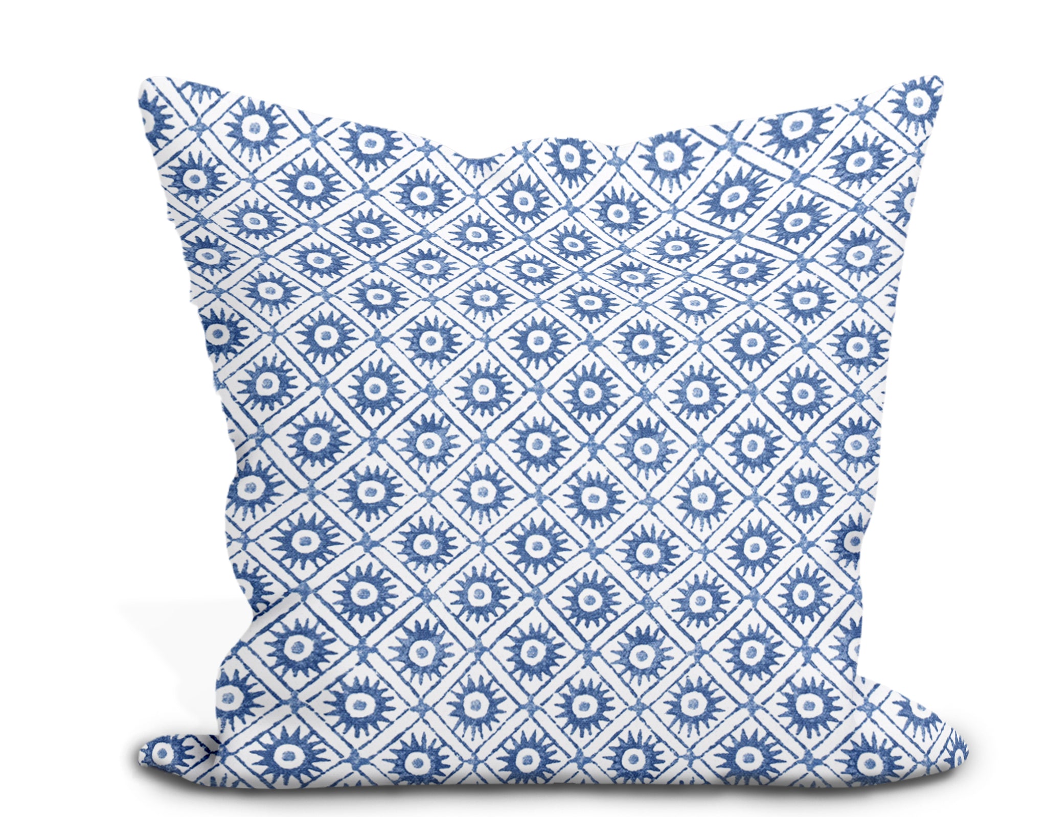 Custom made pillow cover in abstract geometric Thibaut's Mini Sun in navy blue fabric. Please choose size and other custom options from the drop down menu. Price is per single pillow cover unless purchased with insert.