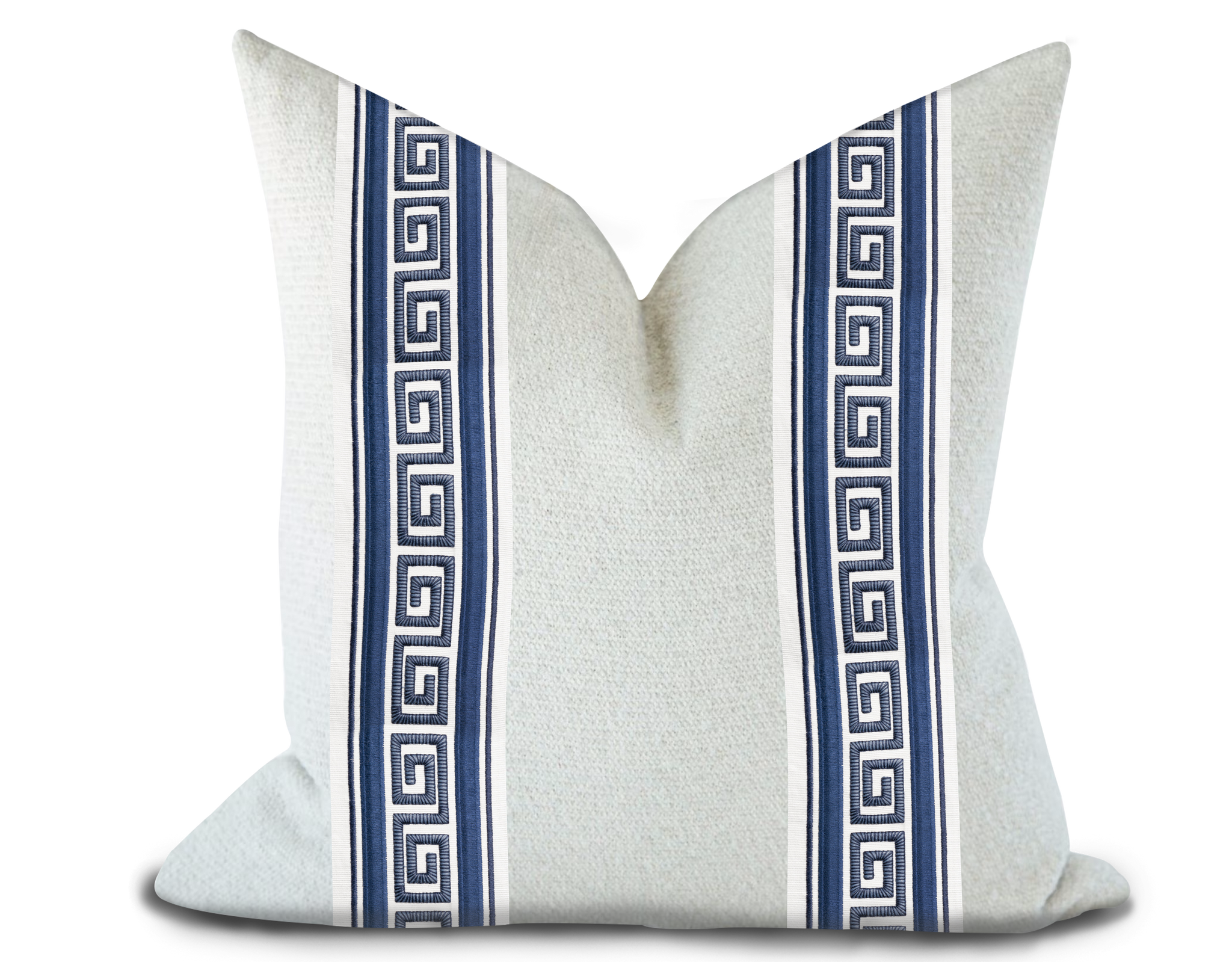 Custom made pillow cover in solid color fabric with Thibaut tape on the front side. Please choose size and other custom options from the drop down menu. Price is per single pillow cover unless purchased with insert.