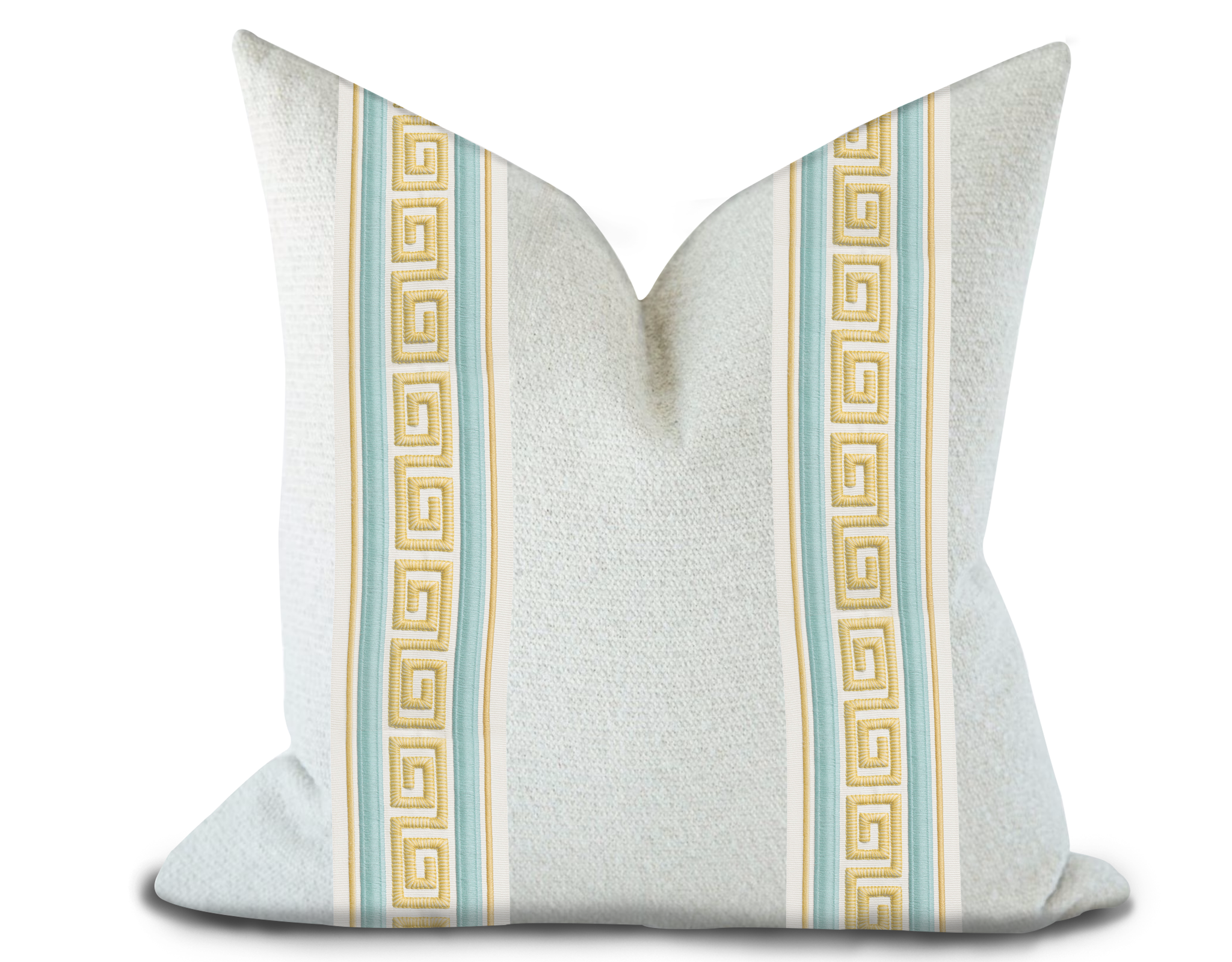 Custom Made Pillow Cover with Thibaut Avenue Tape in Mist and Sunshine / Self-Piping