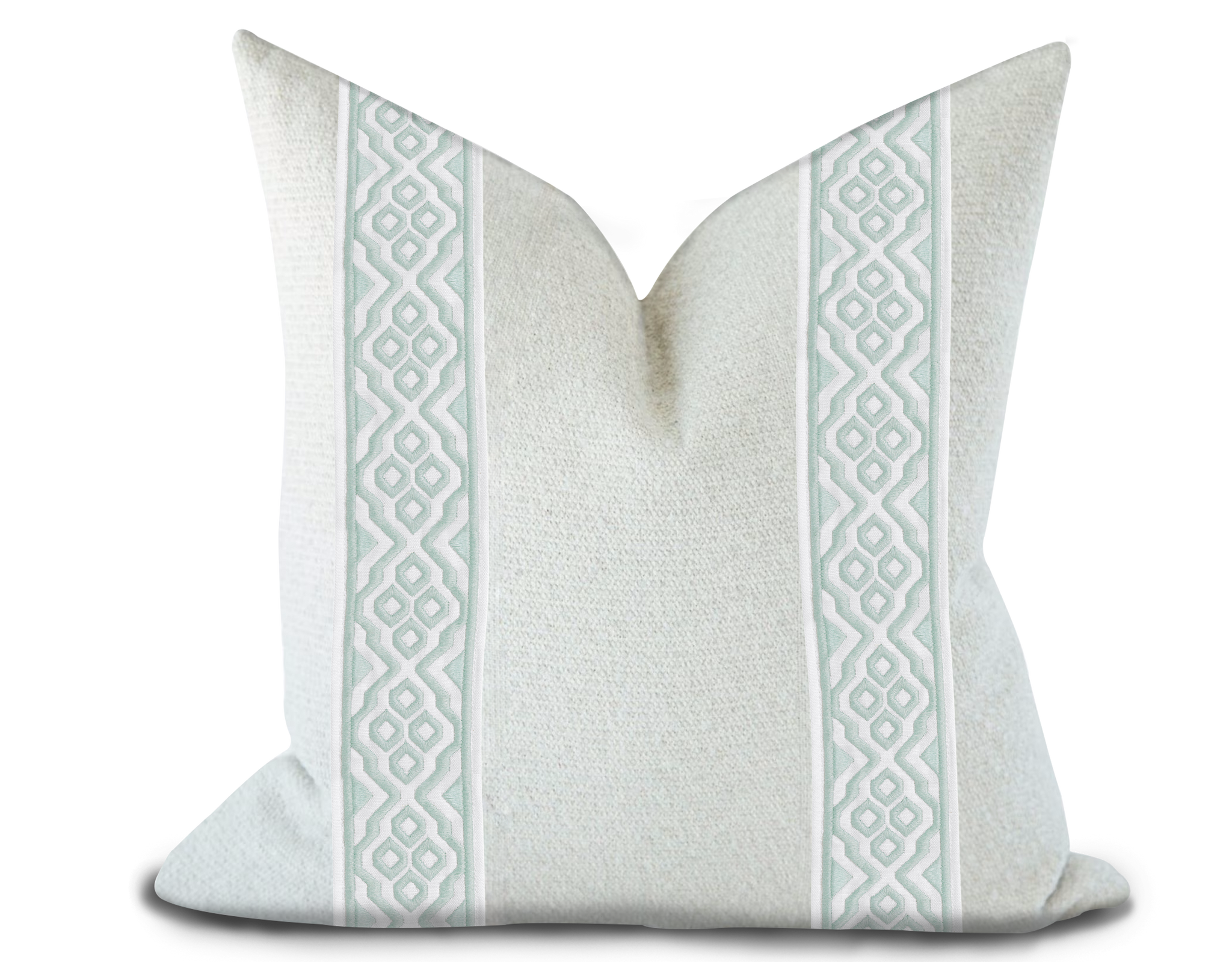 Custom Made Pillow Cover with Thibaut Belinda Tape in Mist / Self-Piping