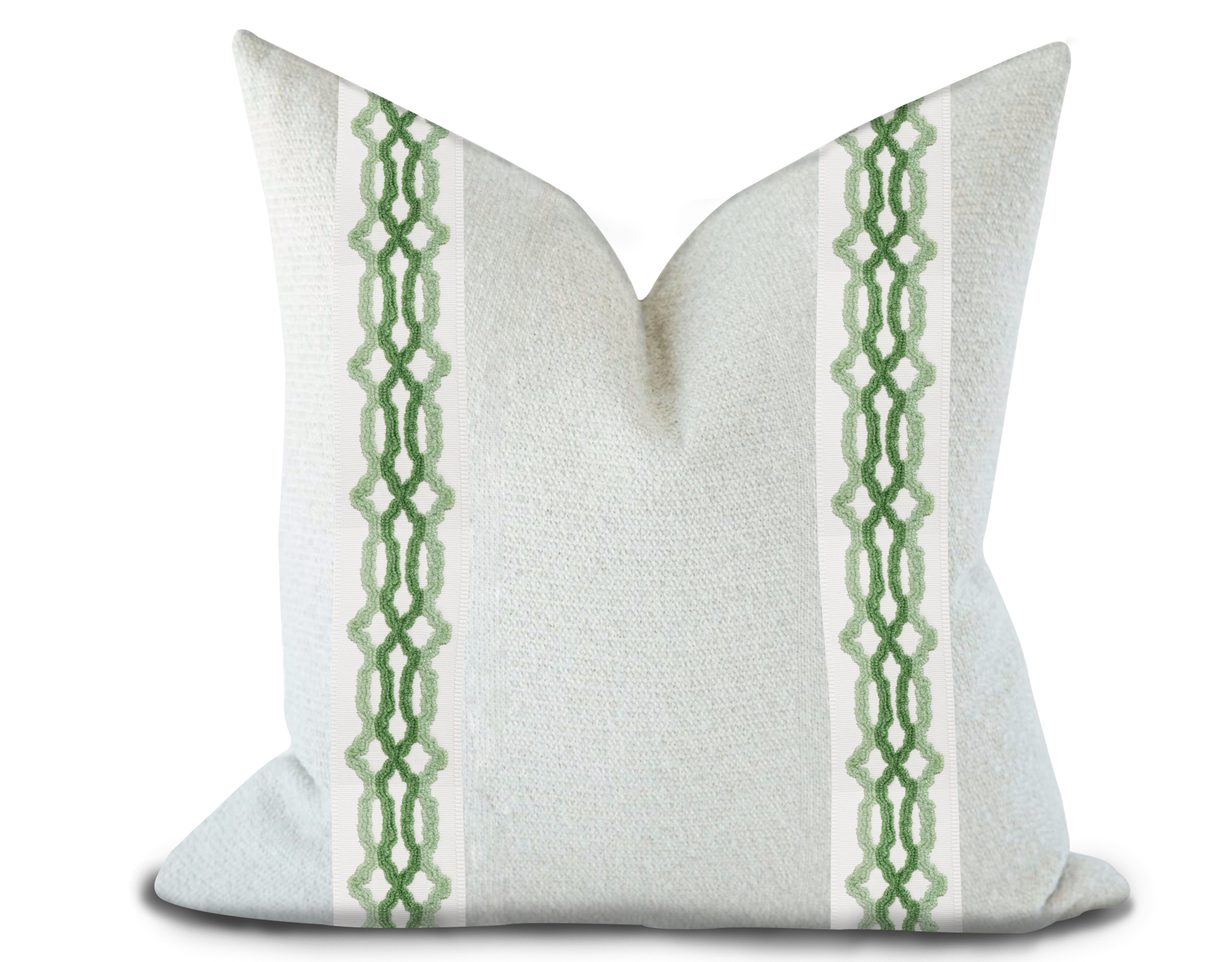 Custom Made Pillow Cover with Thibaut Hartney Tape in Spring and Kelly / Self-Piping