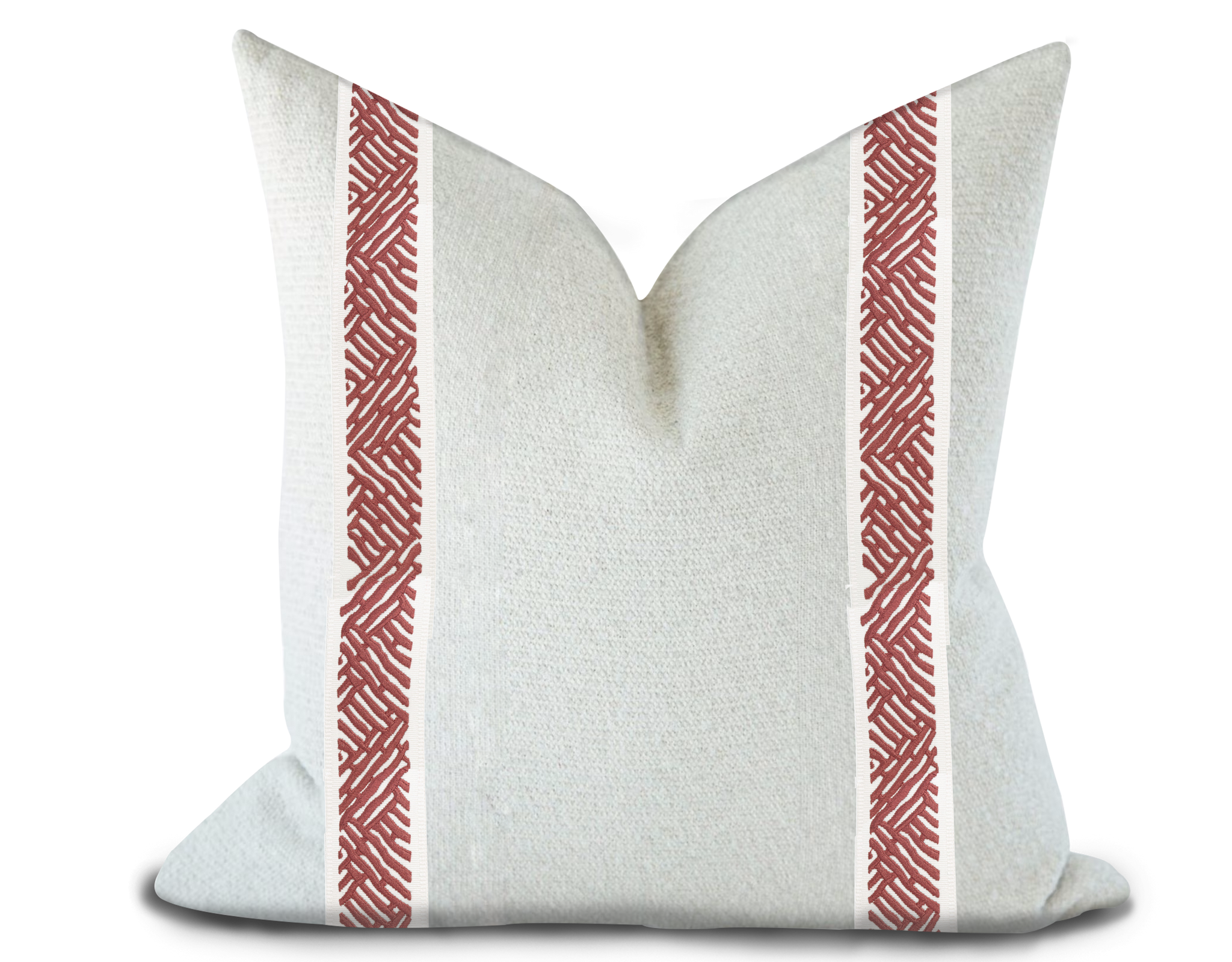 Custom made pillow cover in solid color fabric with Thibaut tape on the front side. Please choose size and other custom options from the drop down menu. Price is per single pillow cover unless purchased with insert.
