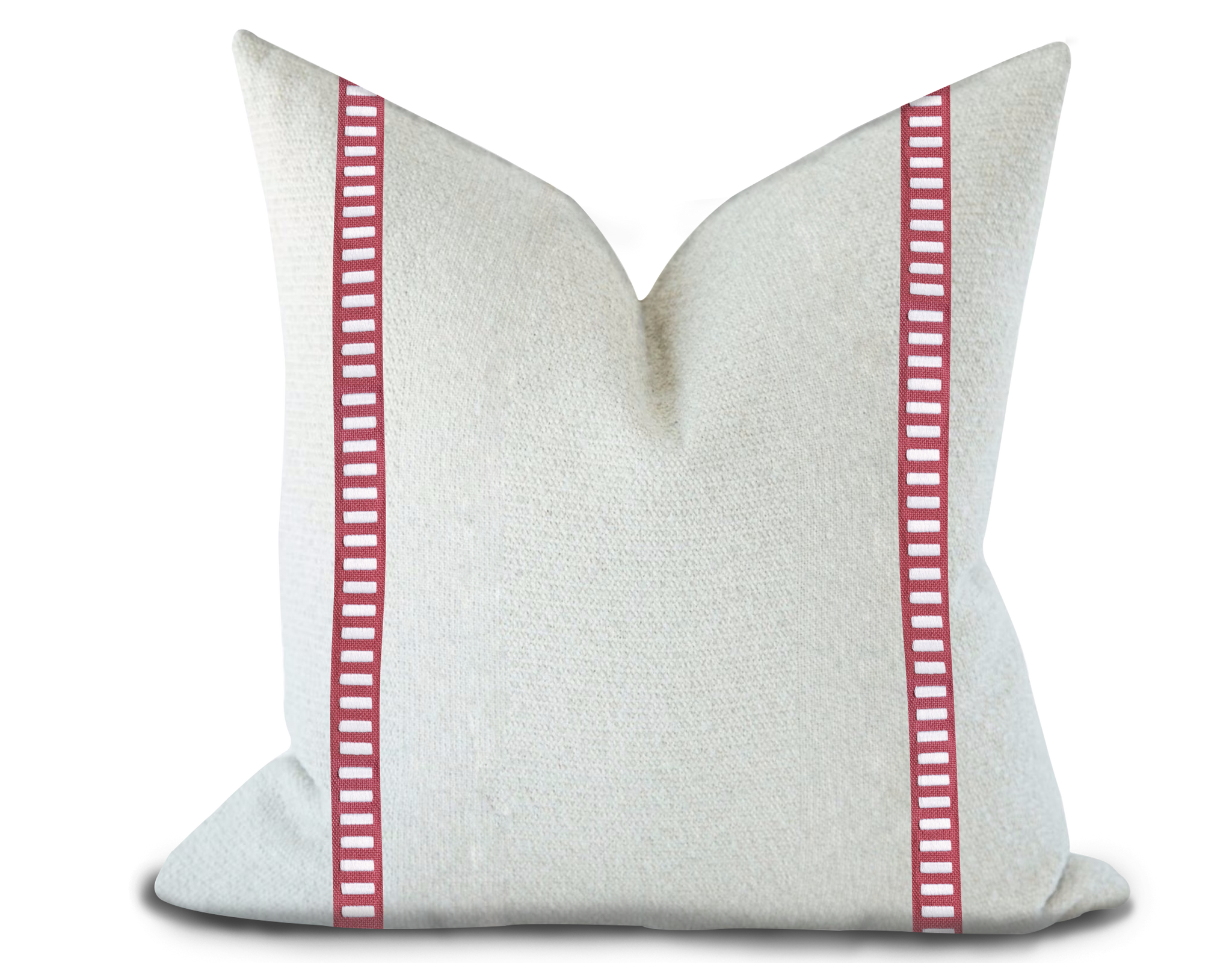 Custom Made Pillow Cover with Thibaut Dash Tape in White on Peony / Self-Piping
