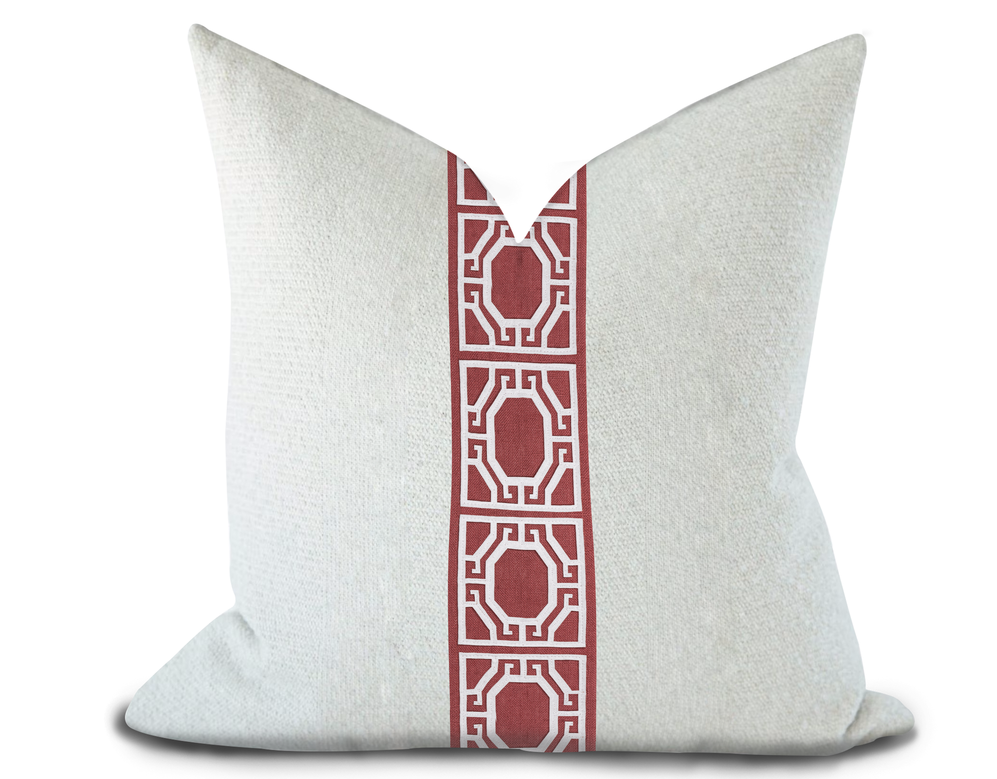 Custom Made Pillow Cover with Thibaut Gate applique tape in Cranberry / Self-Piping