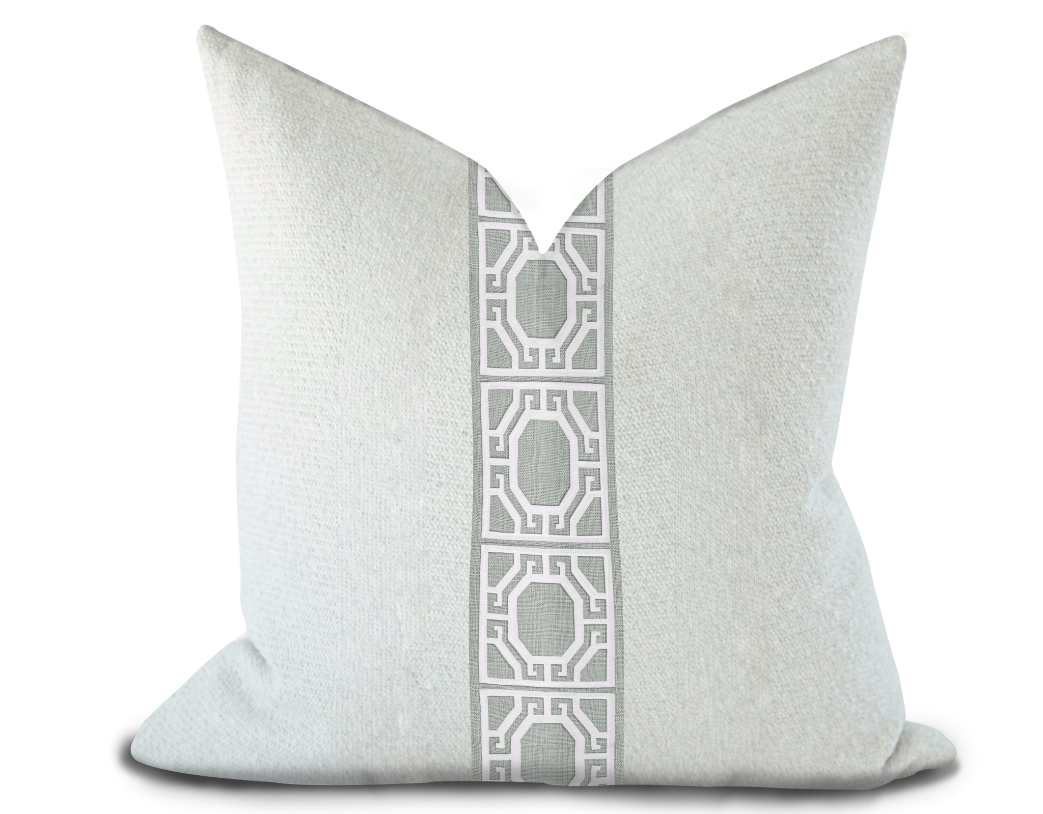 Custom Made Pillow Cover with Thibaut Gate applique tape in Platinum / Self-Piping