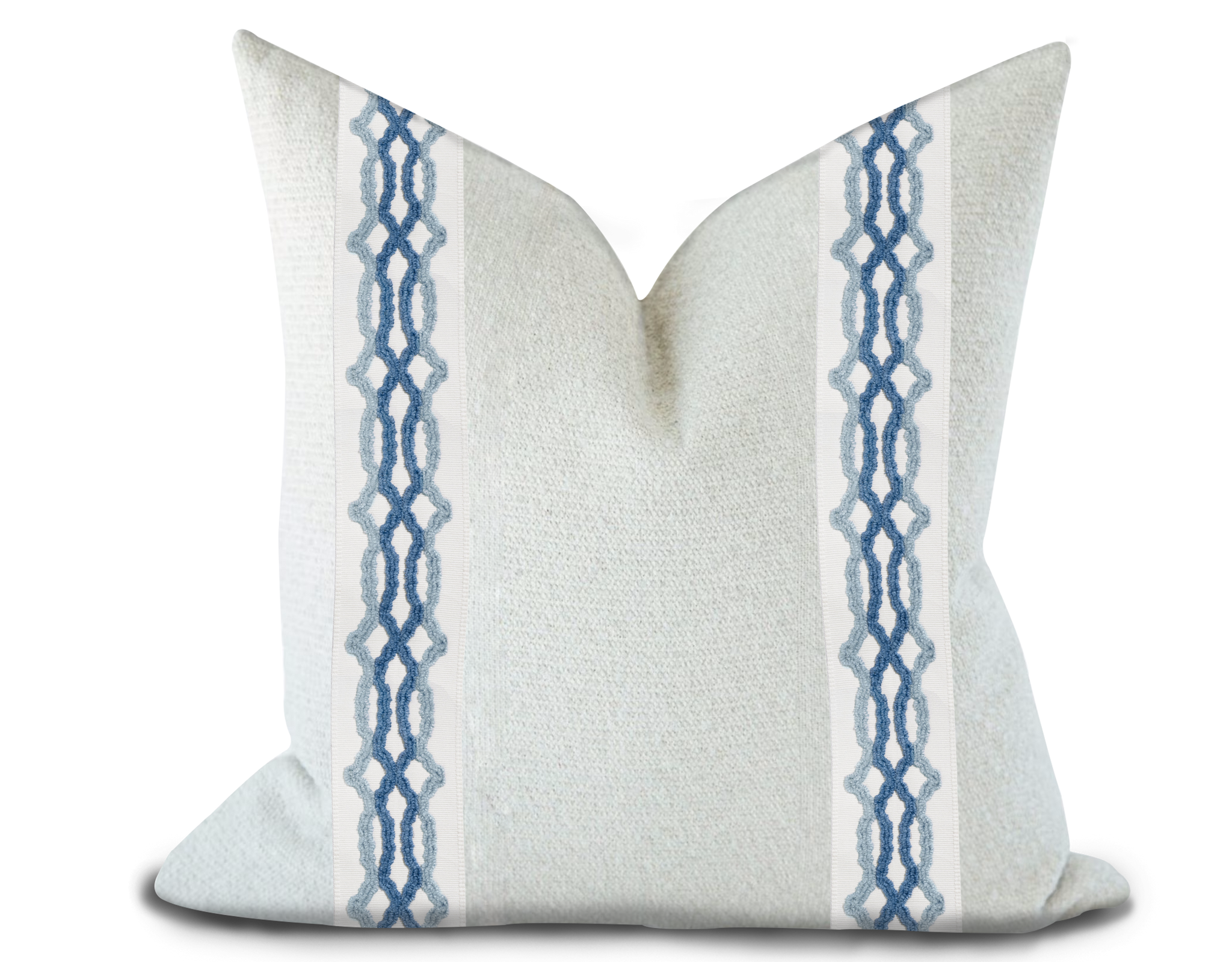 Custom Made Pillow Cover with Thibaut Hartney Tape in Sky and Bermuda / Self-Piping