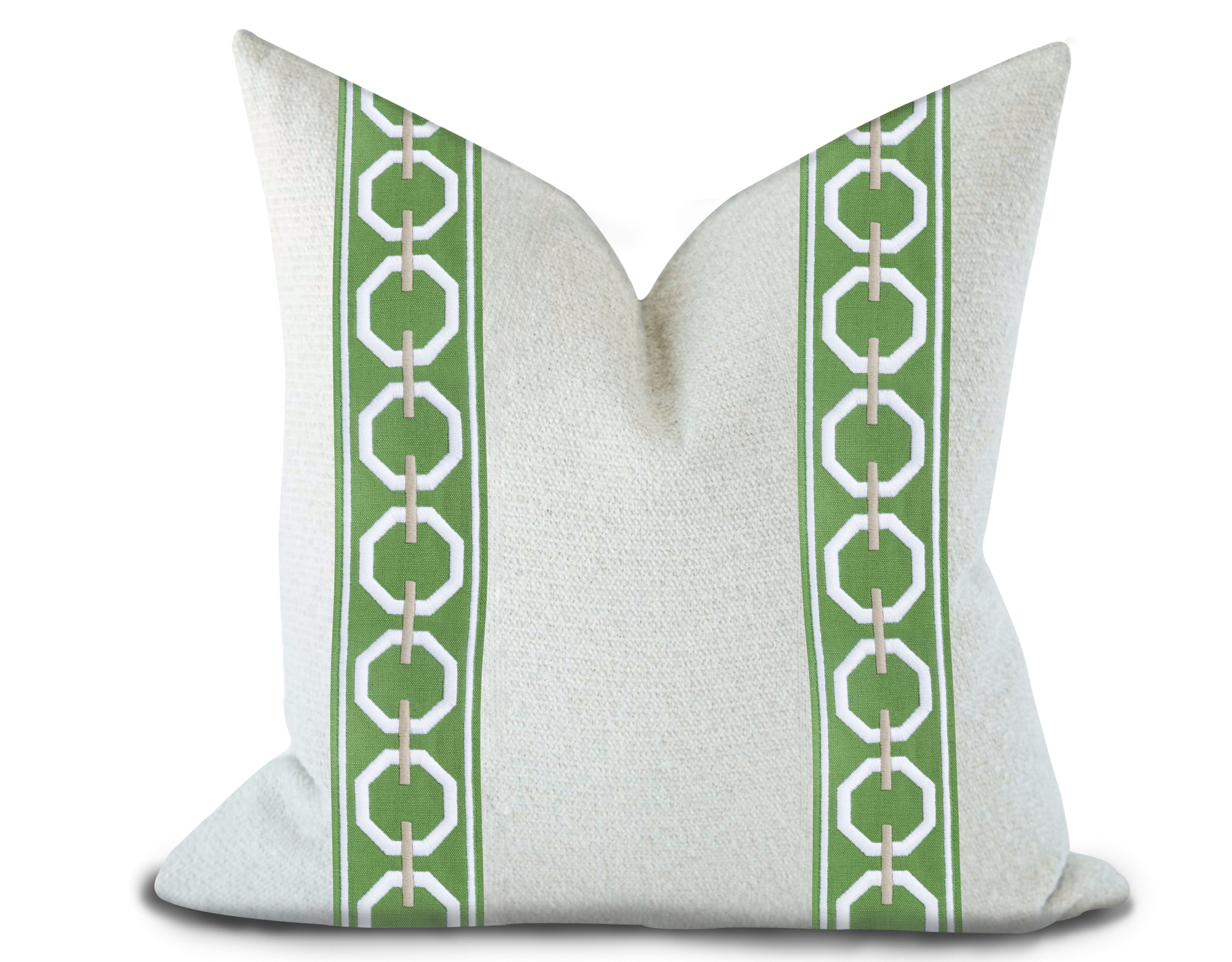 Custom Made Pillow Cover with Thibaut Katonah Tape in Spring and Linen / Self-Piping