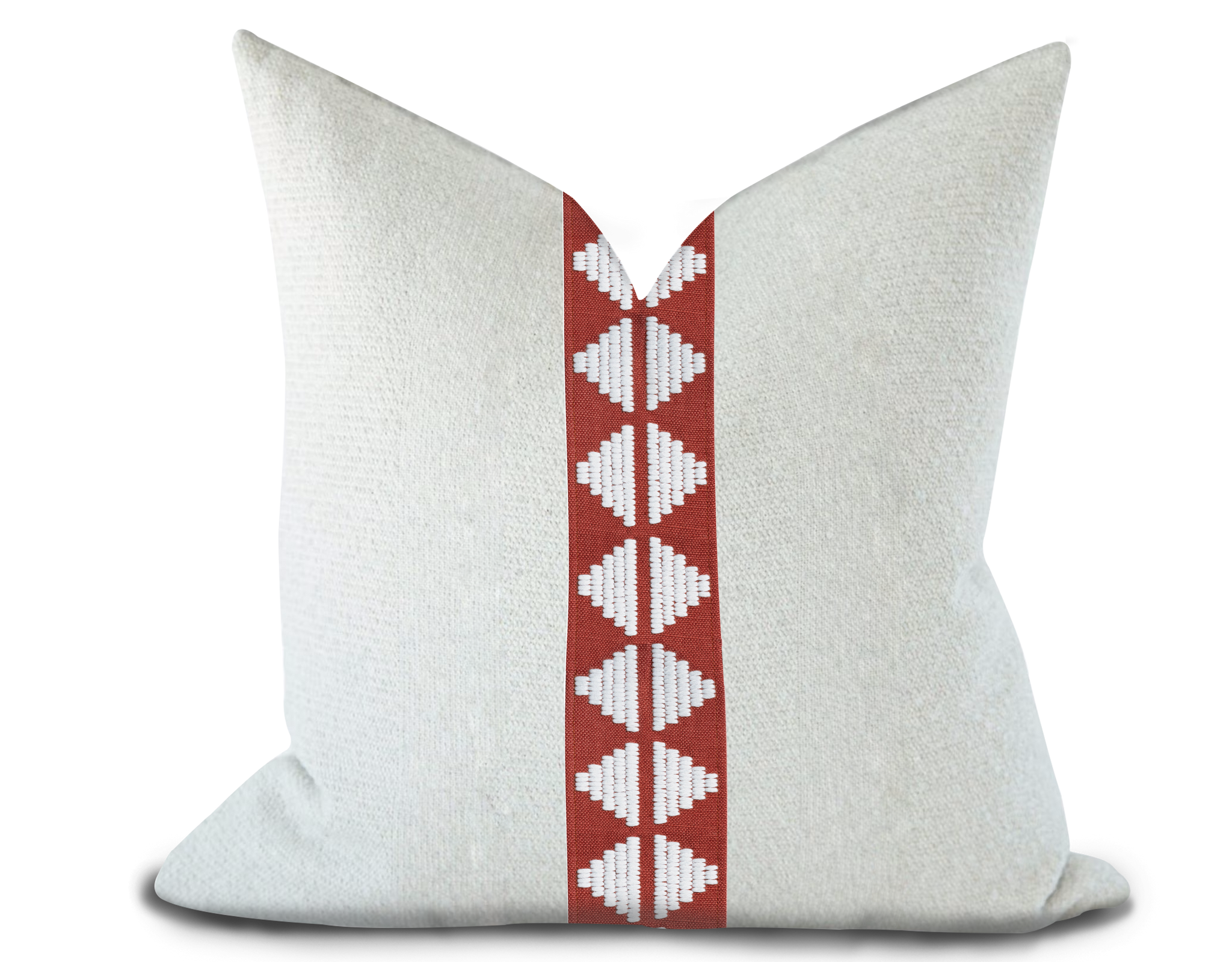 Custom Made Pillow Cover with Thibaut King’s Point Tape in Ruby / Self-Piping