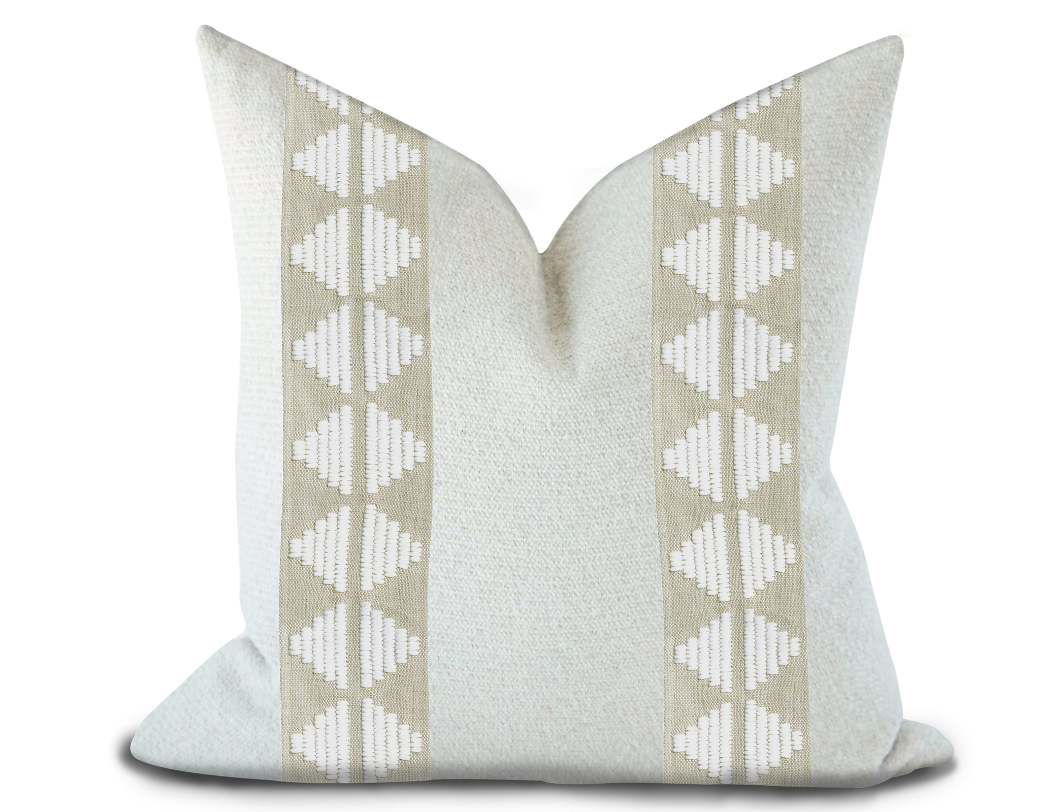 Custom Made Pillow Cover with Thibaut King’s point Tape in Linen / Self-Piping