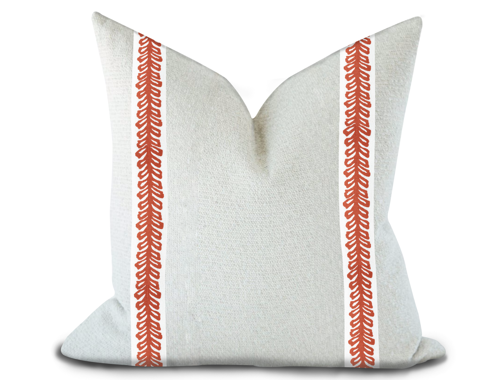 Custom made pillow cover in solid color fabric with Thibaut tape on the front side. Please choose size and other custom options from the drop down menu. Price is per single pillow cover unless purchased with insert.