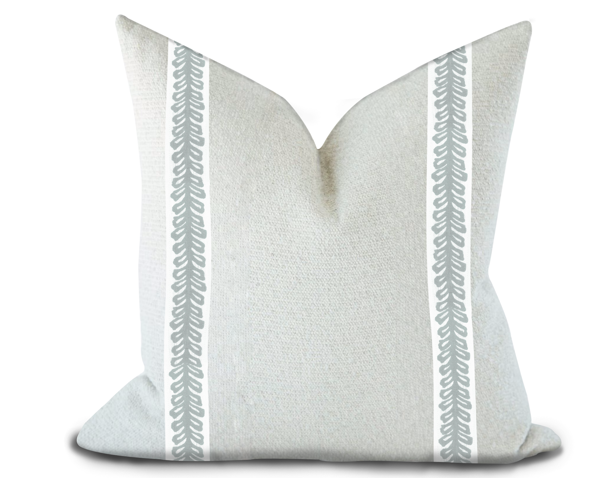 Custom made pillow cover in solid color fabric with Thibaut tape on the front side. Please choose size and other custom options from the drop down menu. Price is per single pillow cover unless purchased with insert.