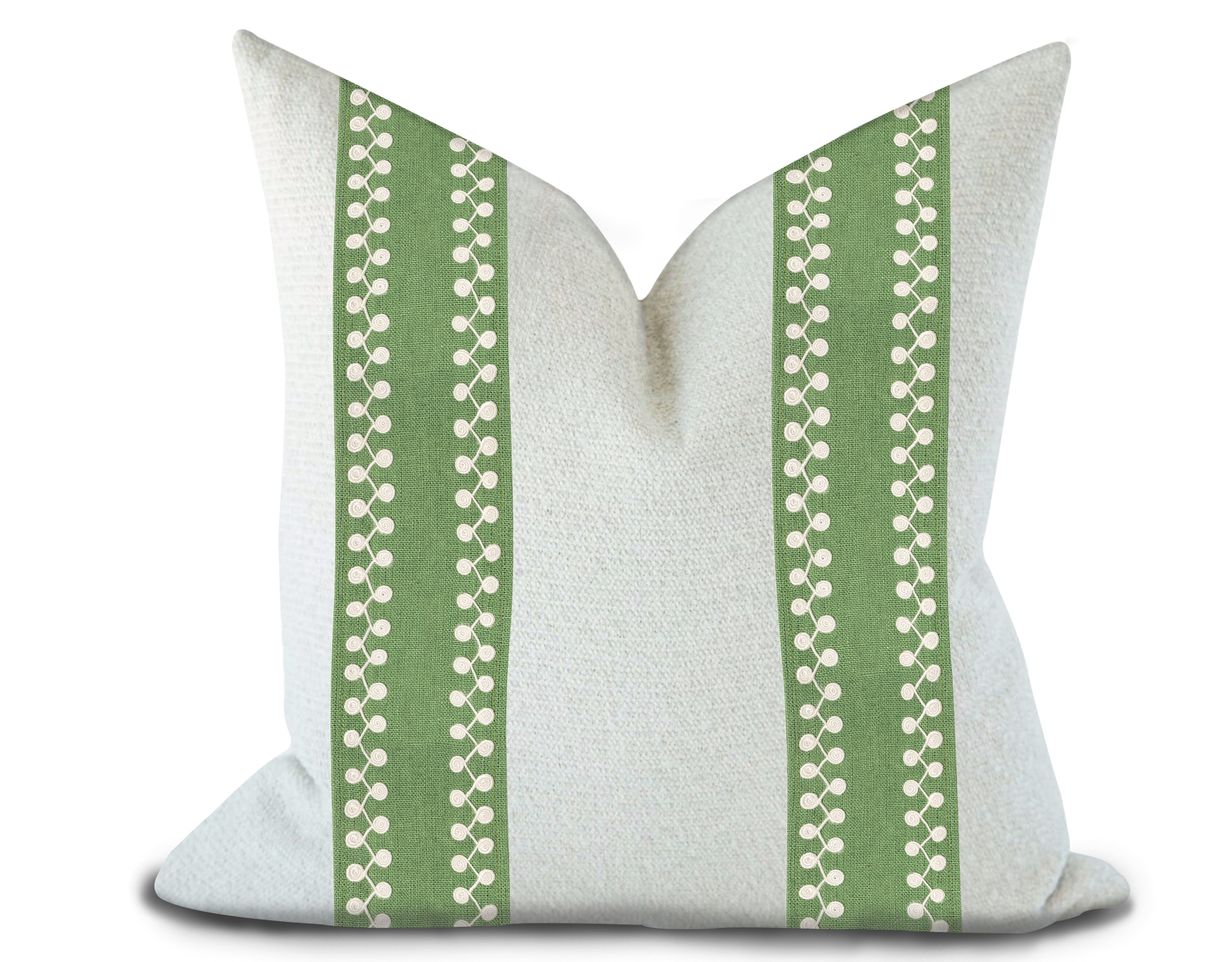 Custom Made Pillow Cover with Thibaut Perla Tape in Kelly / Self-Piping