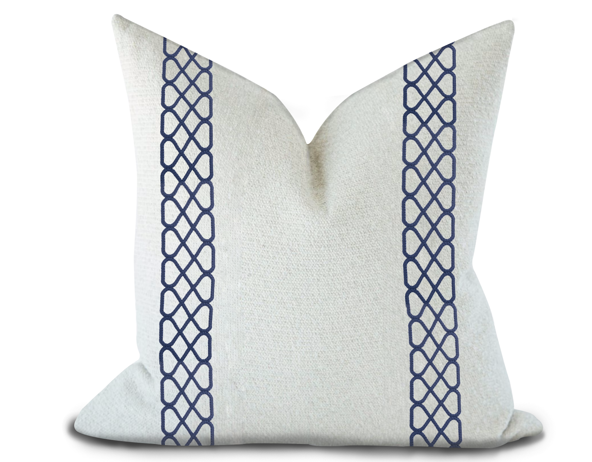 Custom Made Pillow Cover with Thibaut Ripley Applique Tape in Navy / Self-Piping