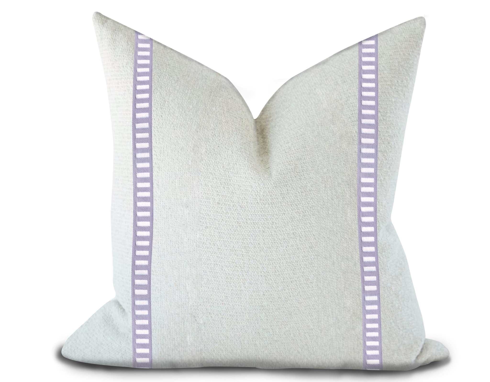 Custom Made Pillow Cover with Thibaut Dash Tape in White on Lilac / Self-Piping