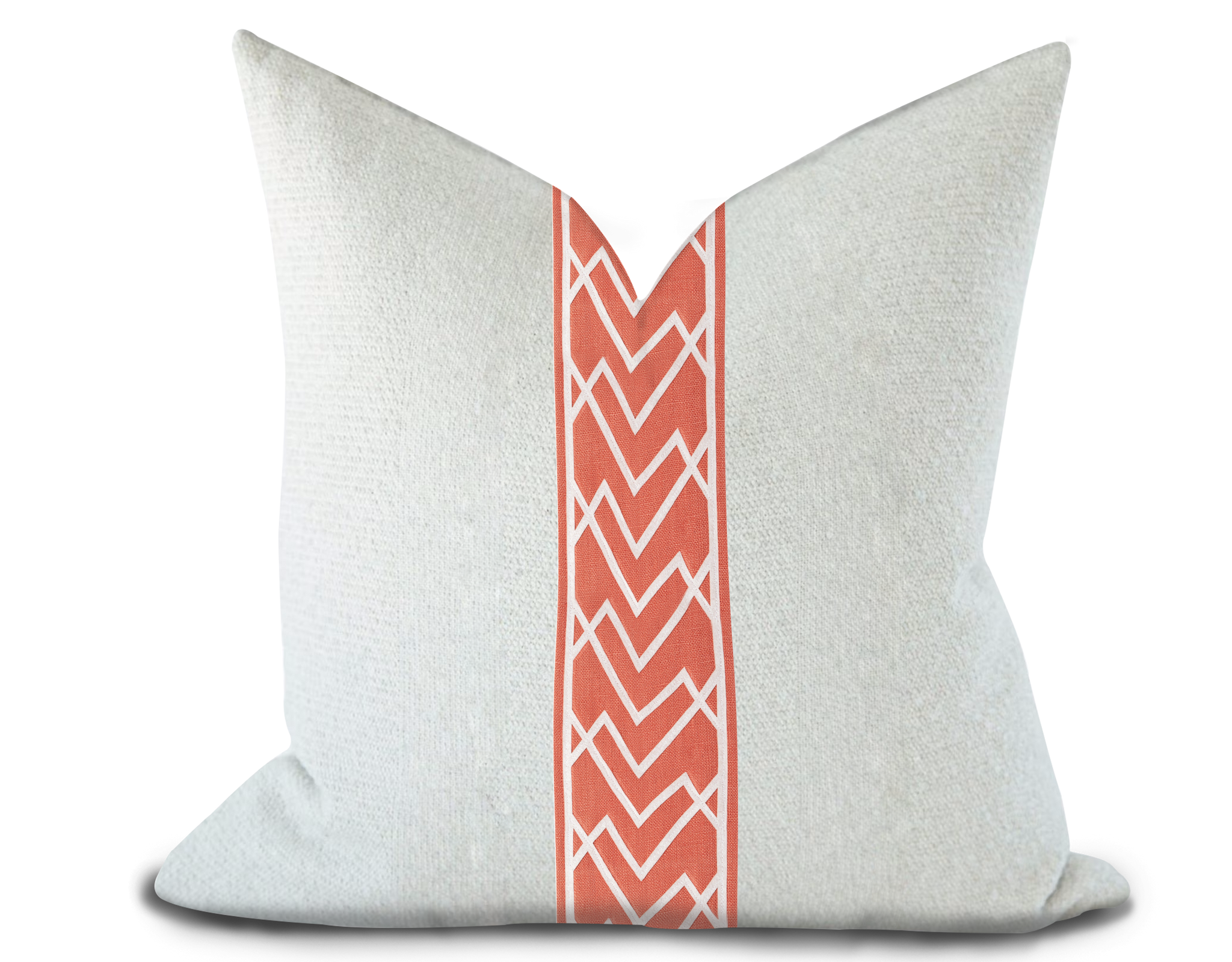 Custom Made Pillow Cover with Thibaut Summit Applique Tape in Coral / Self-Piping