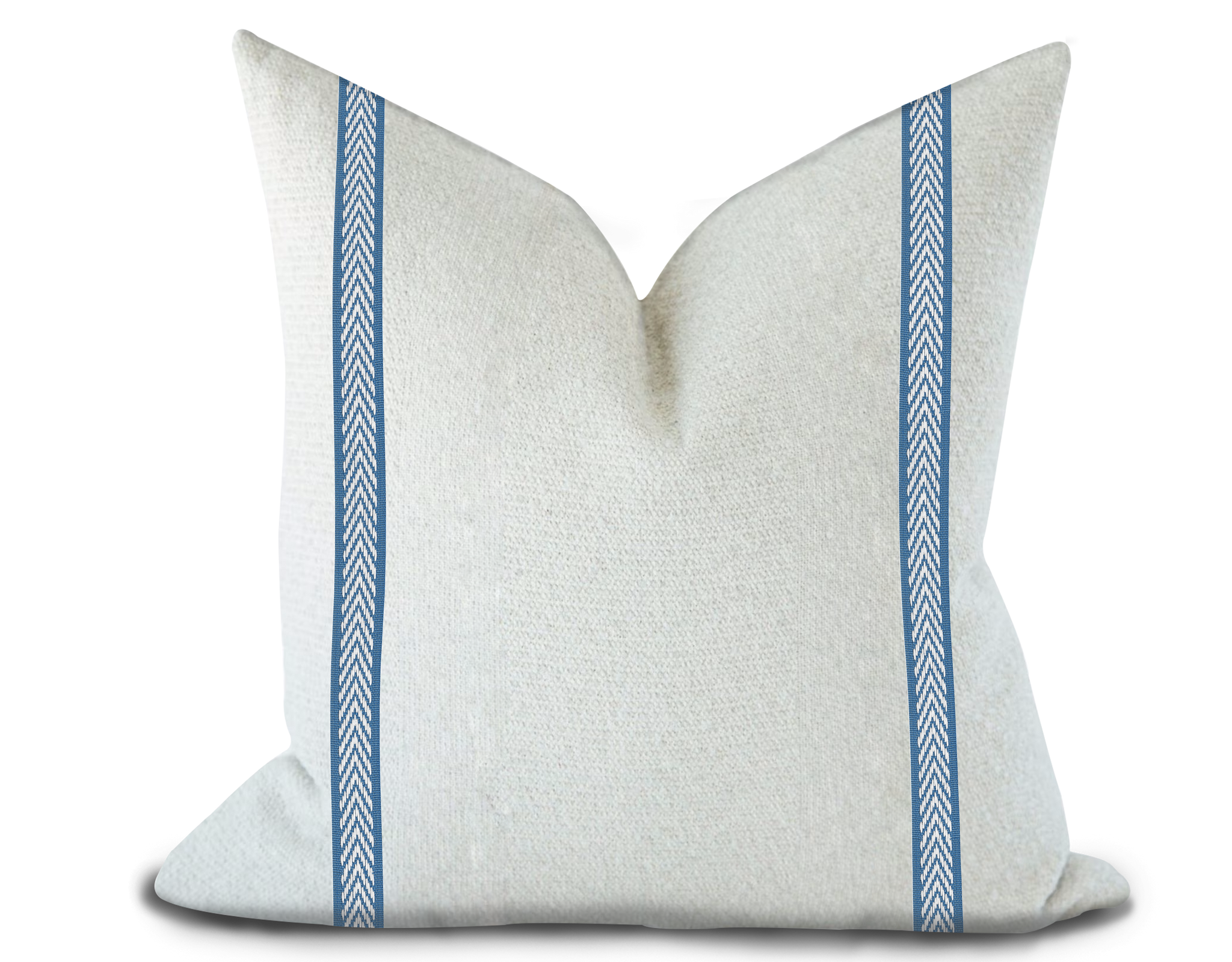 Custom Made Pillow Cover with Thibaut Westport Tape in Island Blue / Self-Piping