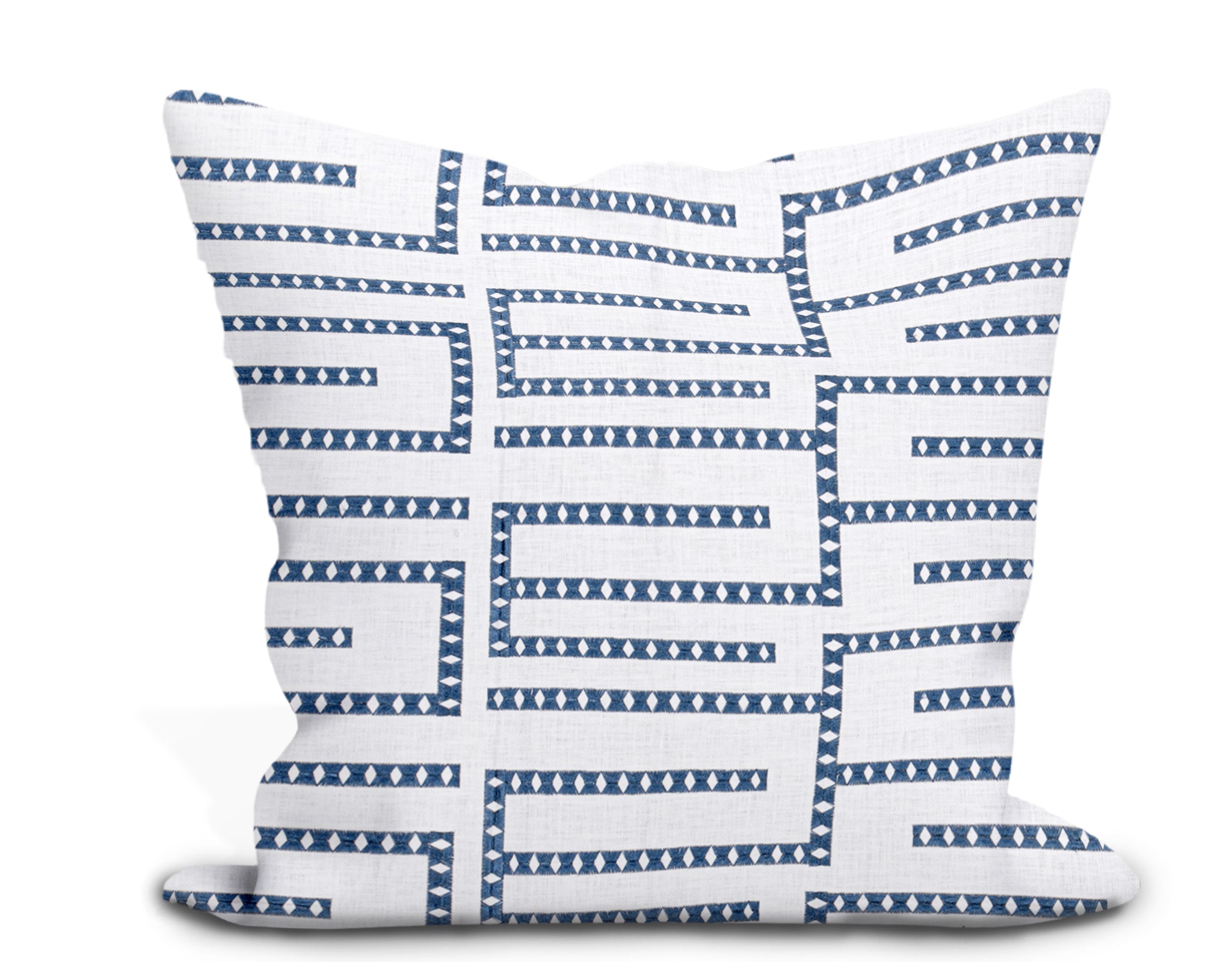 Custom Pillow Cover in Abstract Geometric Thibaut Architect Embroidery in Blue - One Side