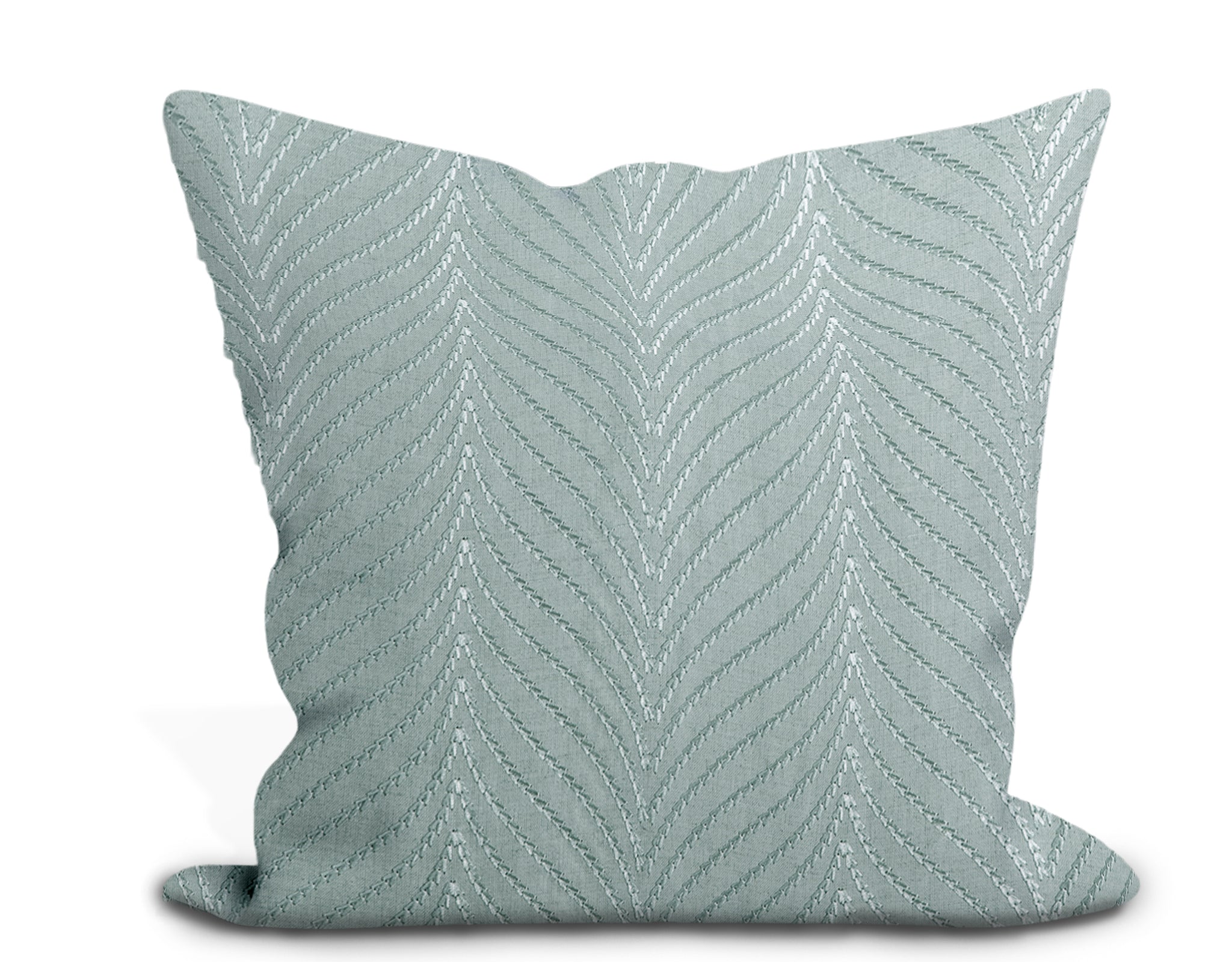 Custom Pillow Cover in Abstract Thibaut Clayton Herringbone Embroidery in Robin"s Egg - One Side