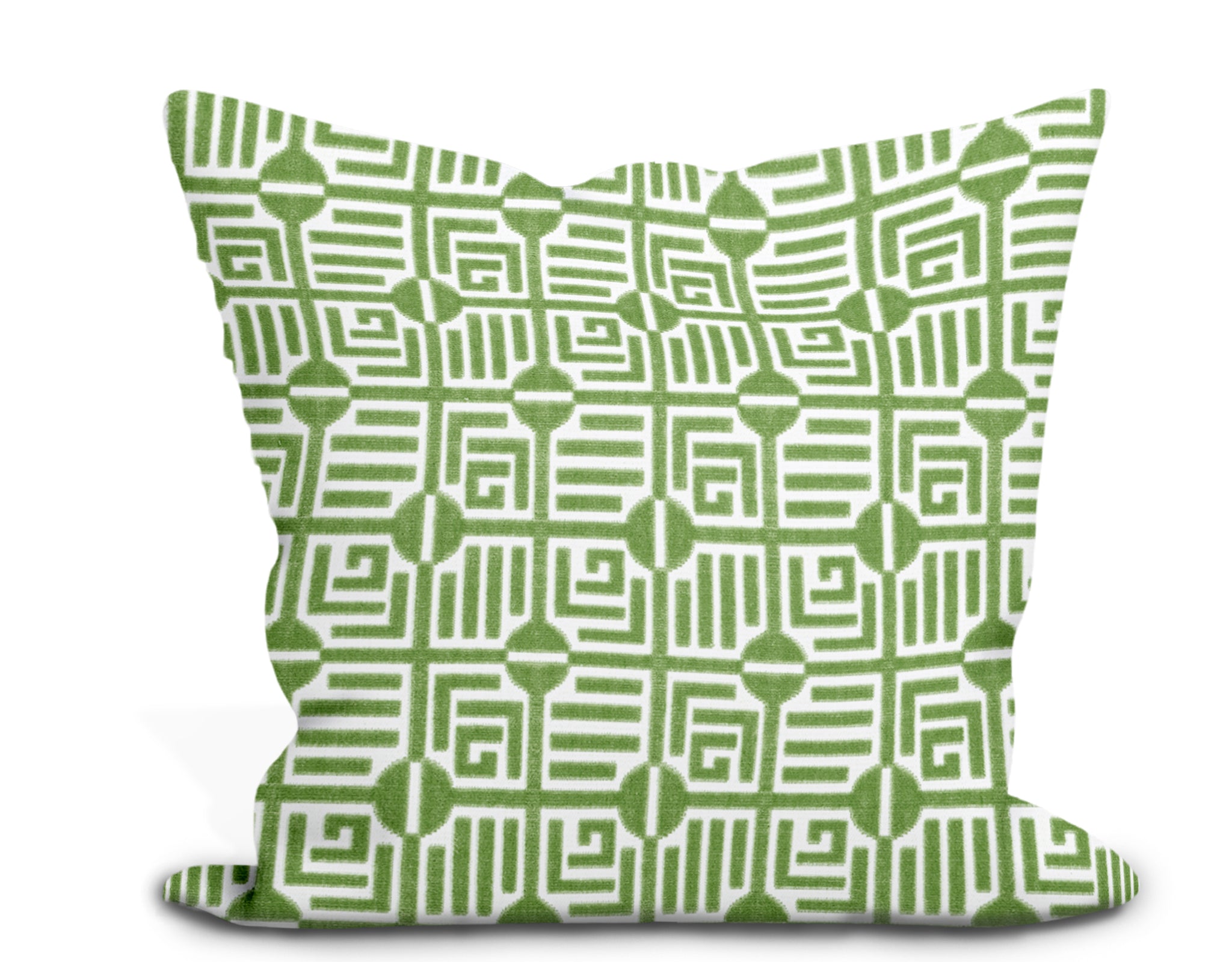Custom made pillow cover in abstract Thibaut's Labyrinth Velvet in emerald fabric. Please choose size and other custom options from the drop-down menu. Price is per single pillow cover unless purchased with insert.