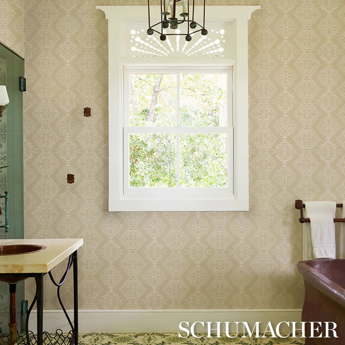 Inspired by a magnificent silk velvet suit in the Colonial Williamsburg Foundation archive, Berkeley is a modern adaptation of an 18th-century geometric floral. Featuring unique patterning and a subtle mottled texture, this handsome medium-scale wallpaper design has a wonderful fresco-like quality. Also available as a fabric.