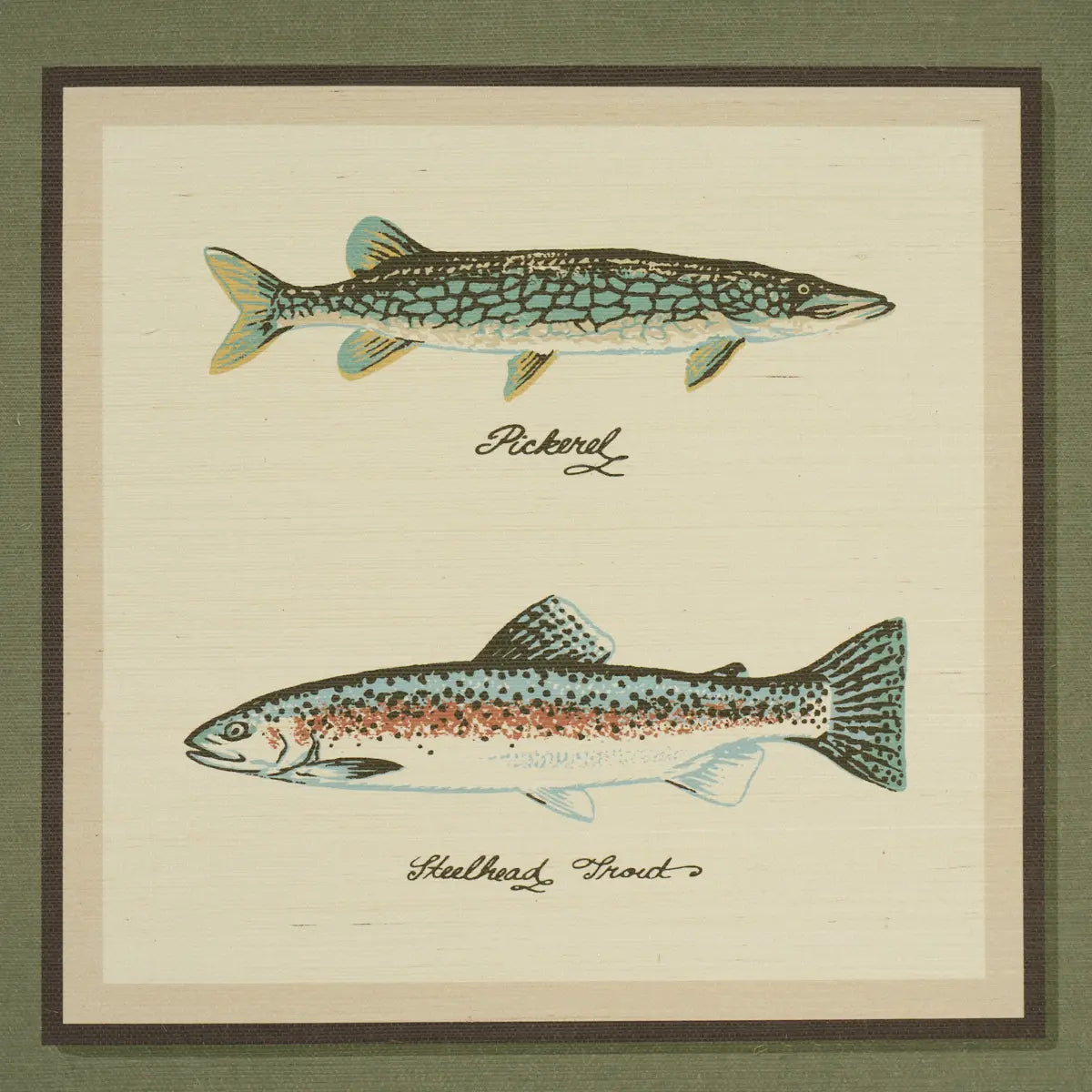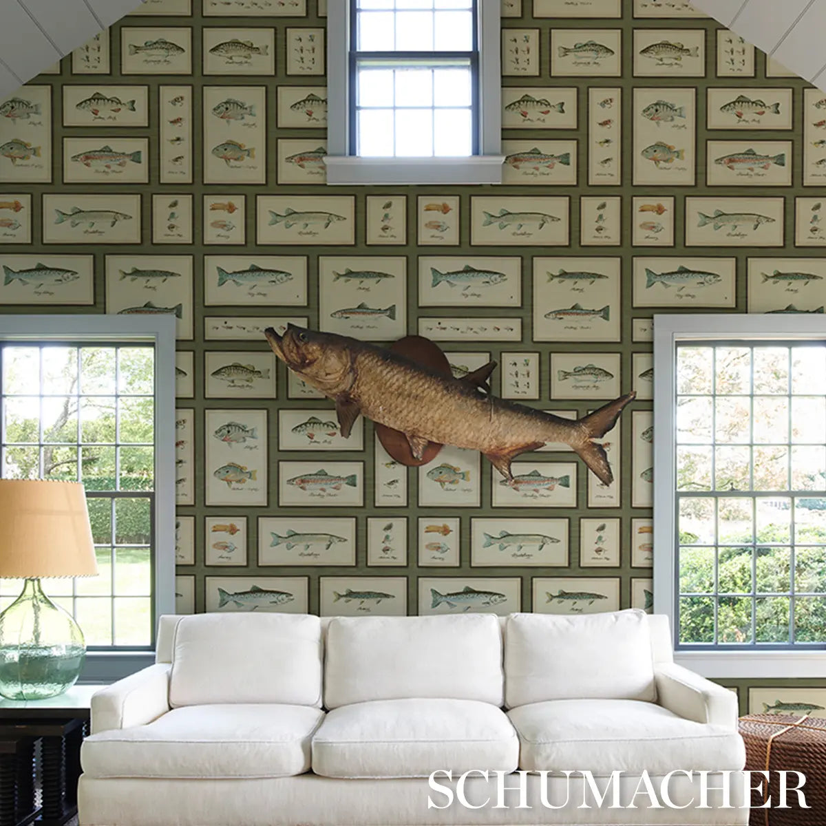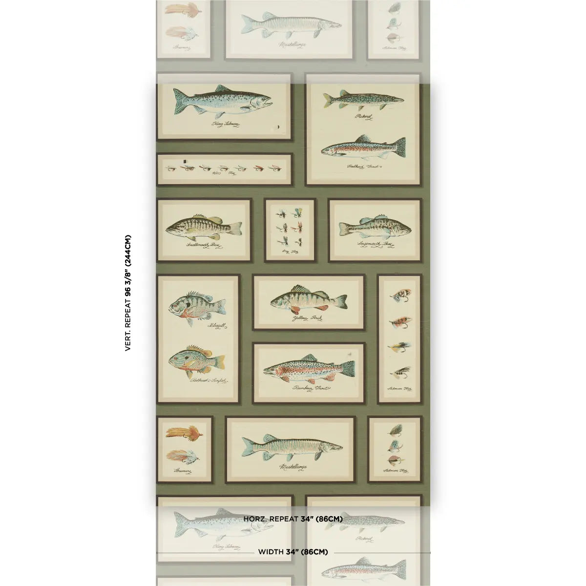 Our studio breathed new life into a documentary print when it created Jamie’s Trophies Sisal wallpaper, a fun-spirited ode to the art of angling. A salon-style arrangement of framed fish prints and feather flies is printed on a sisal ground, giving this textural large-scale trompe l’oeil its unique charm and graphic presence.