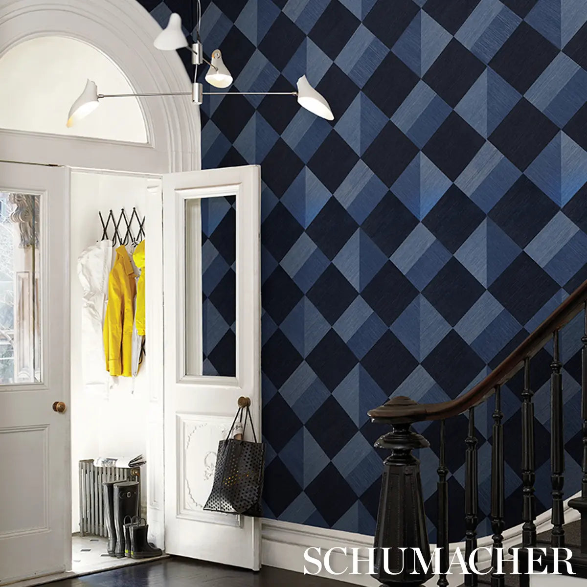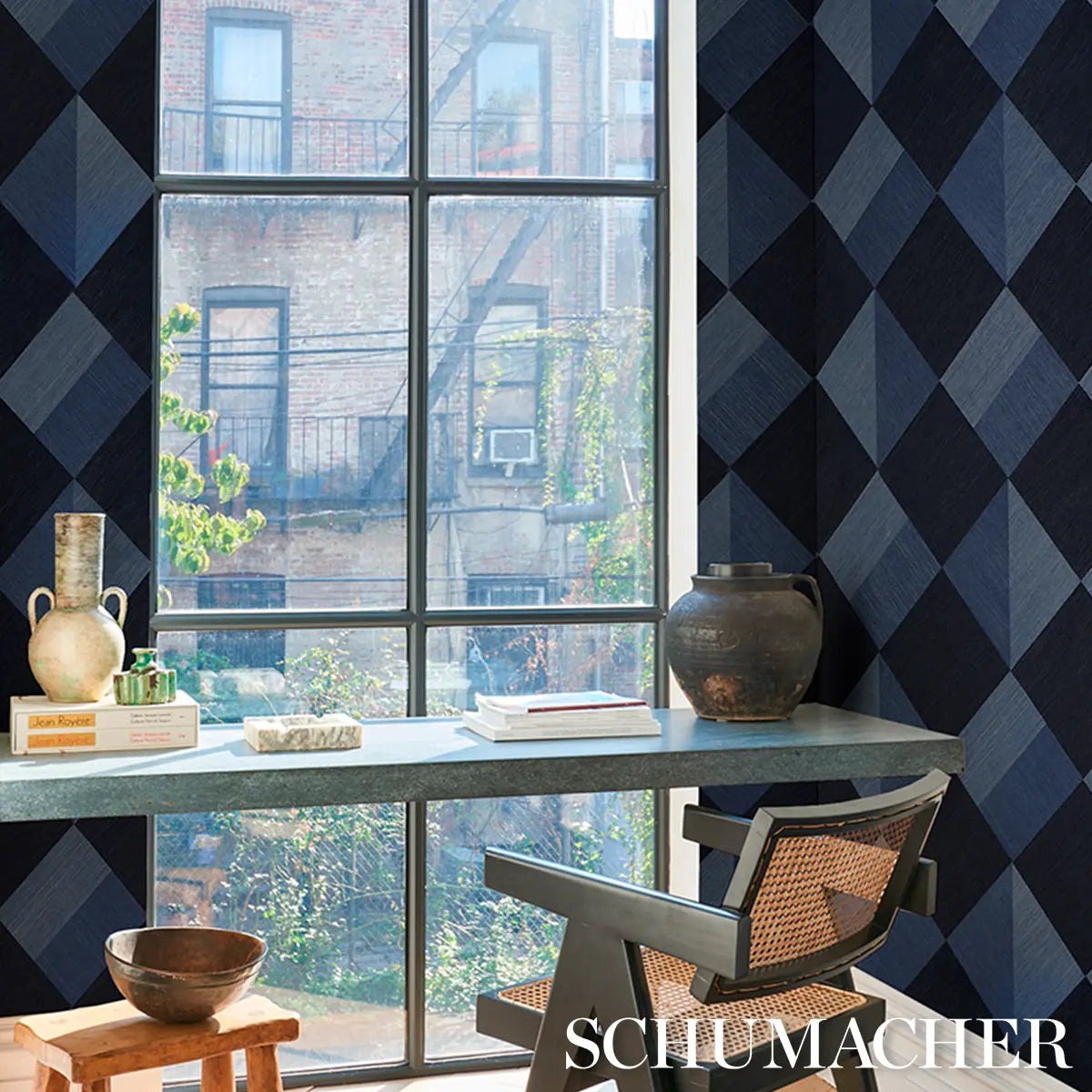 Backdrop’s Maestro is a unique, textural take on a traditional diamond pattern that evokes the elegant geometries of parquet floors. Comprising three colorways of our Haruki Sisal pieced together by hand, this medium-scale multidirectional design beautifully captures the play of light. Color variations and subtle irregularities are inherent to this wallpaper’s natural fibers and artisanal appeal.