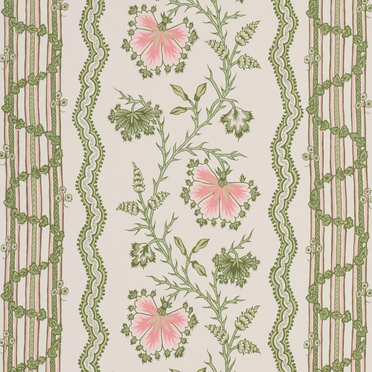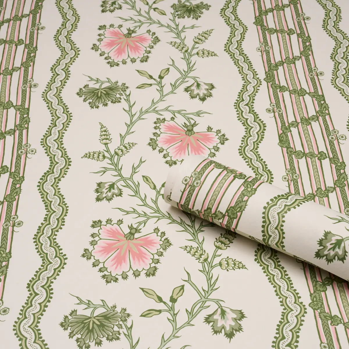 Inspired by an 18th-century gown in the Colonial Williamsburg Foundation archive, Parvati Floral Stripe is an enchanting floral stripe printed on a fibrous paper ground. With its delicate details and perfect medium scale, this versatile wallpaper reflects the artistry and handmade beauty of the original Indian block-printed cotton textile. Also available as a fabric.