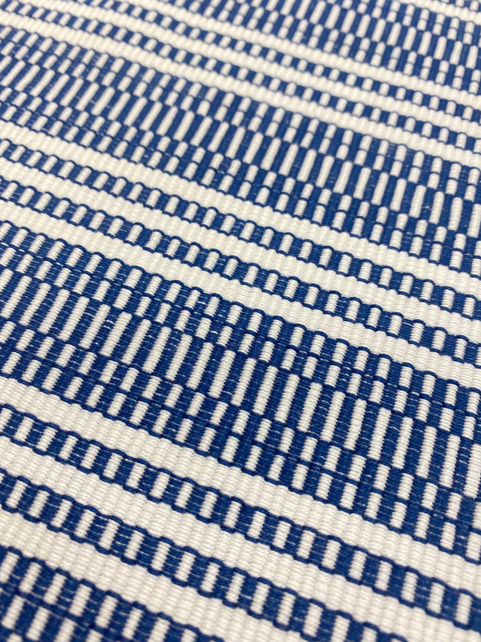 1.5 Yard of 54" wide designer nautical stripe woven upholstery fabric in navy blue and white. Price is for 1.5 yards long piece.Let us know if you need more than what is available in our store.