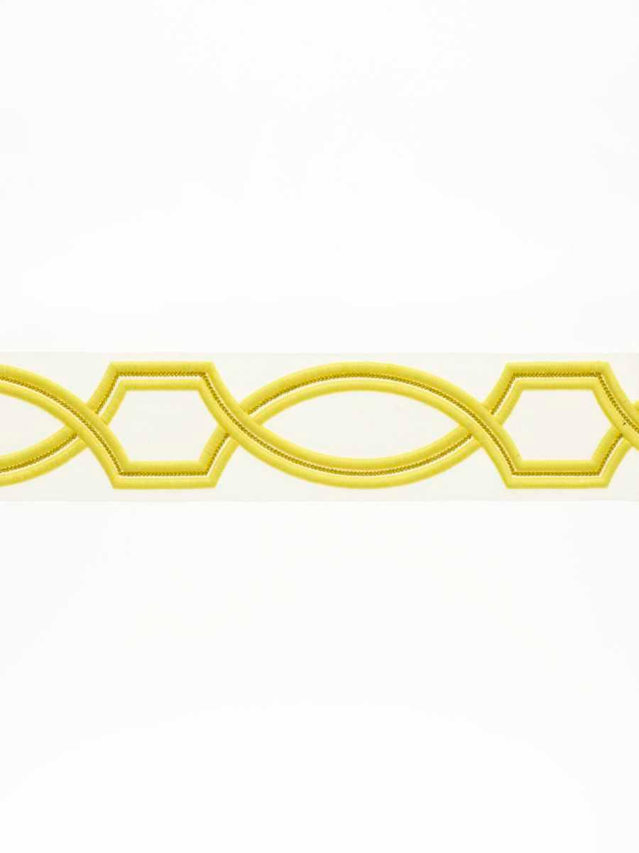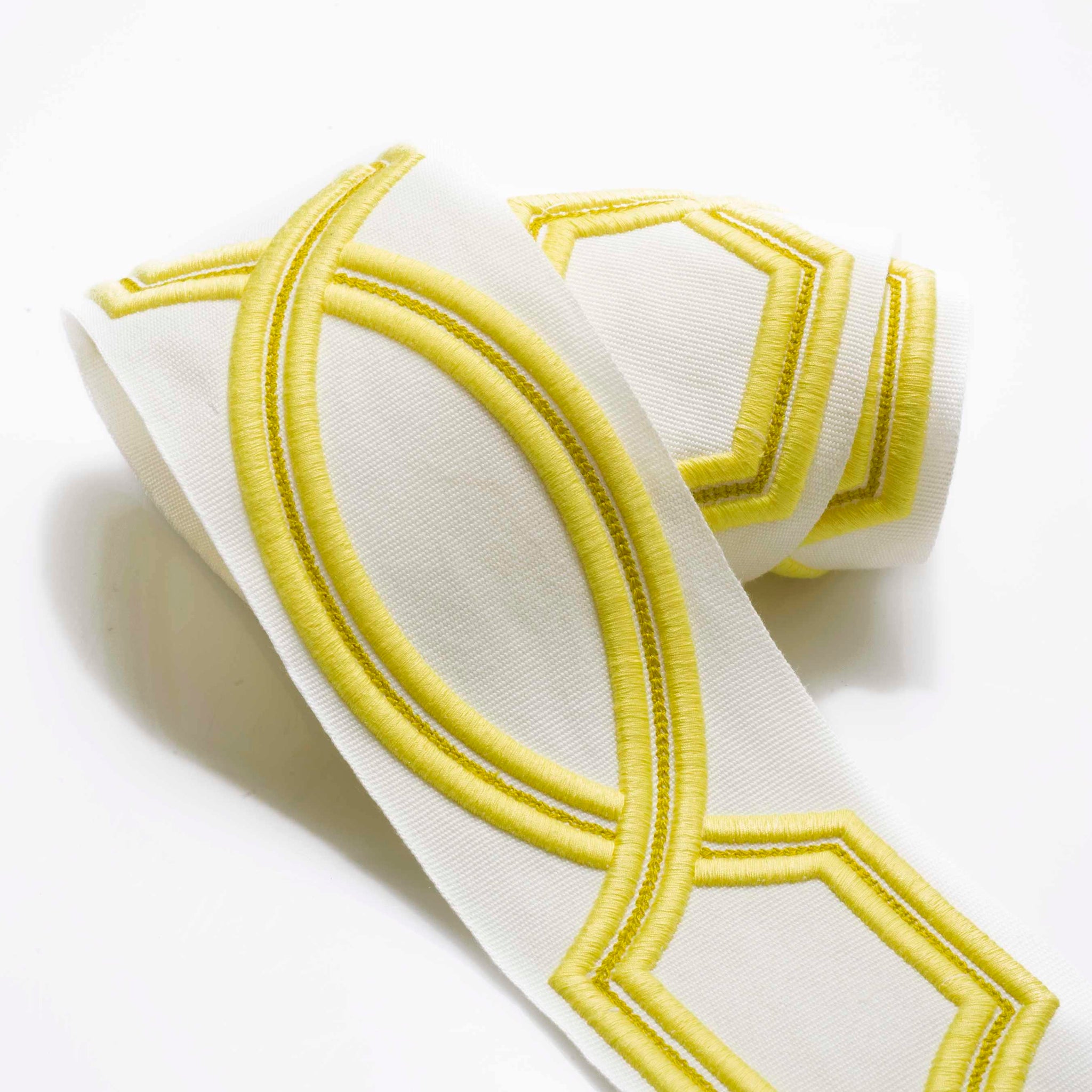3" Wide Ivory Lemon Yellow Geometric Embroidered Drapery Tape TrimWidth