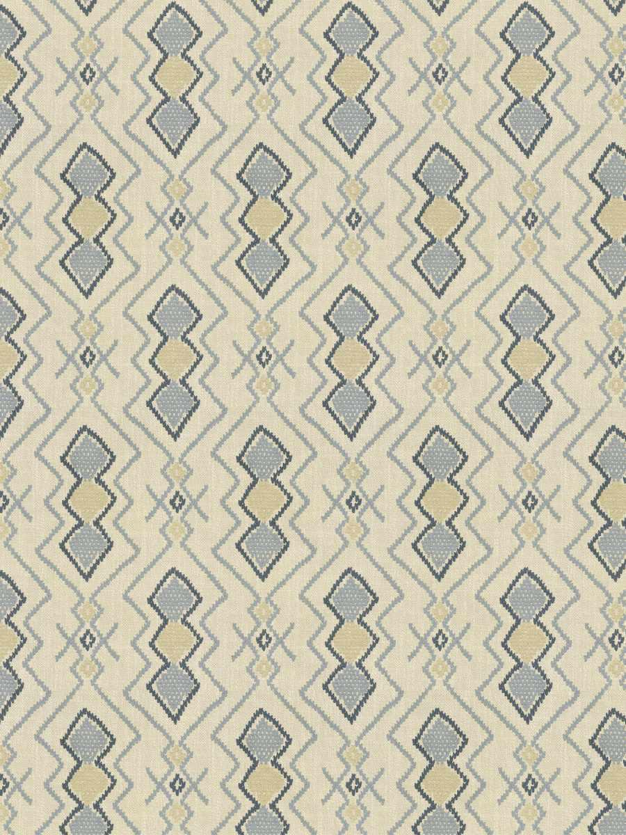 Beige Teal Blue Geometric Embroidered Drapery Fabric