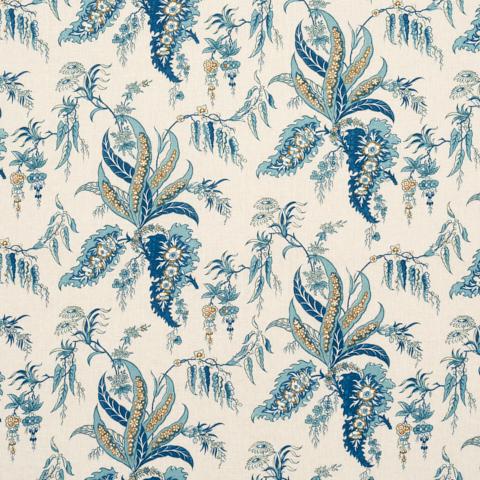 Schumacher Apolline Botanical Fabric 181731 / Ciel & Marine