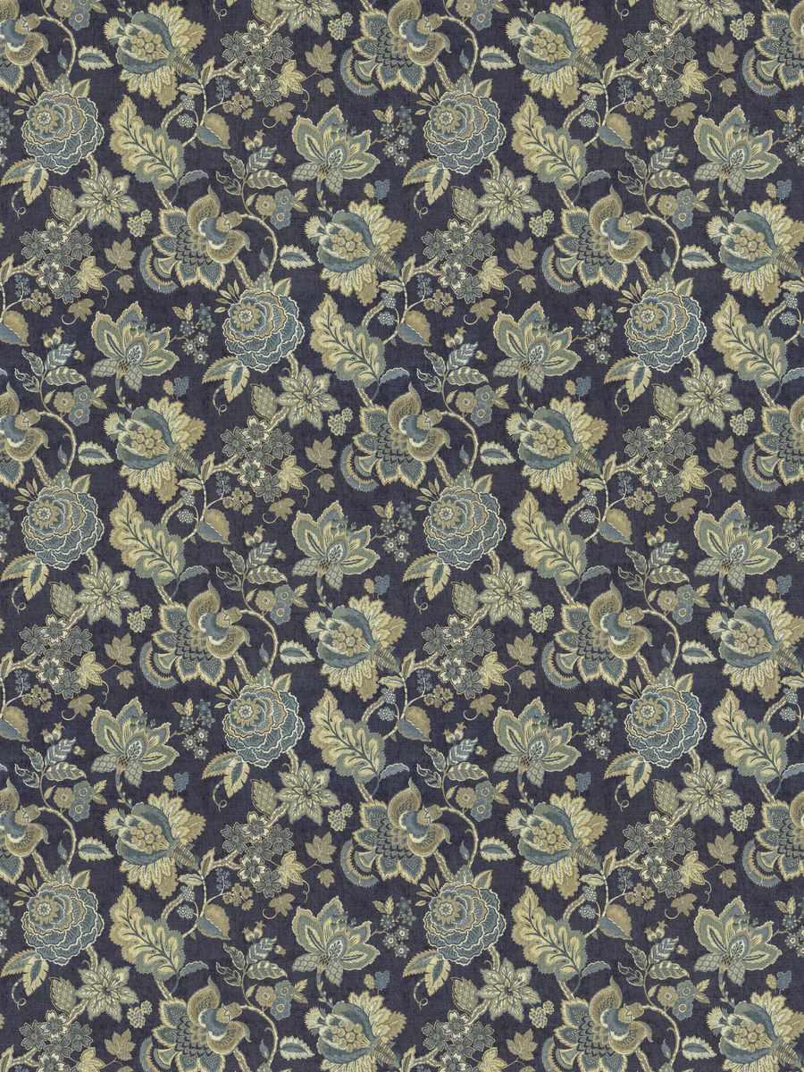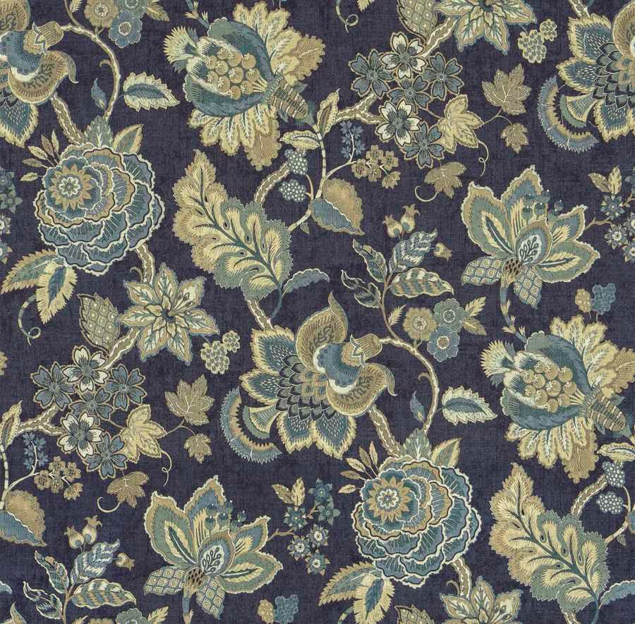Cotton Indigo Navy Blue Teal Taupe Floral Jacobean Upholstery Drapery Fabric