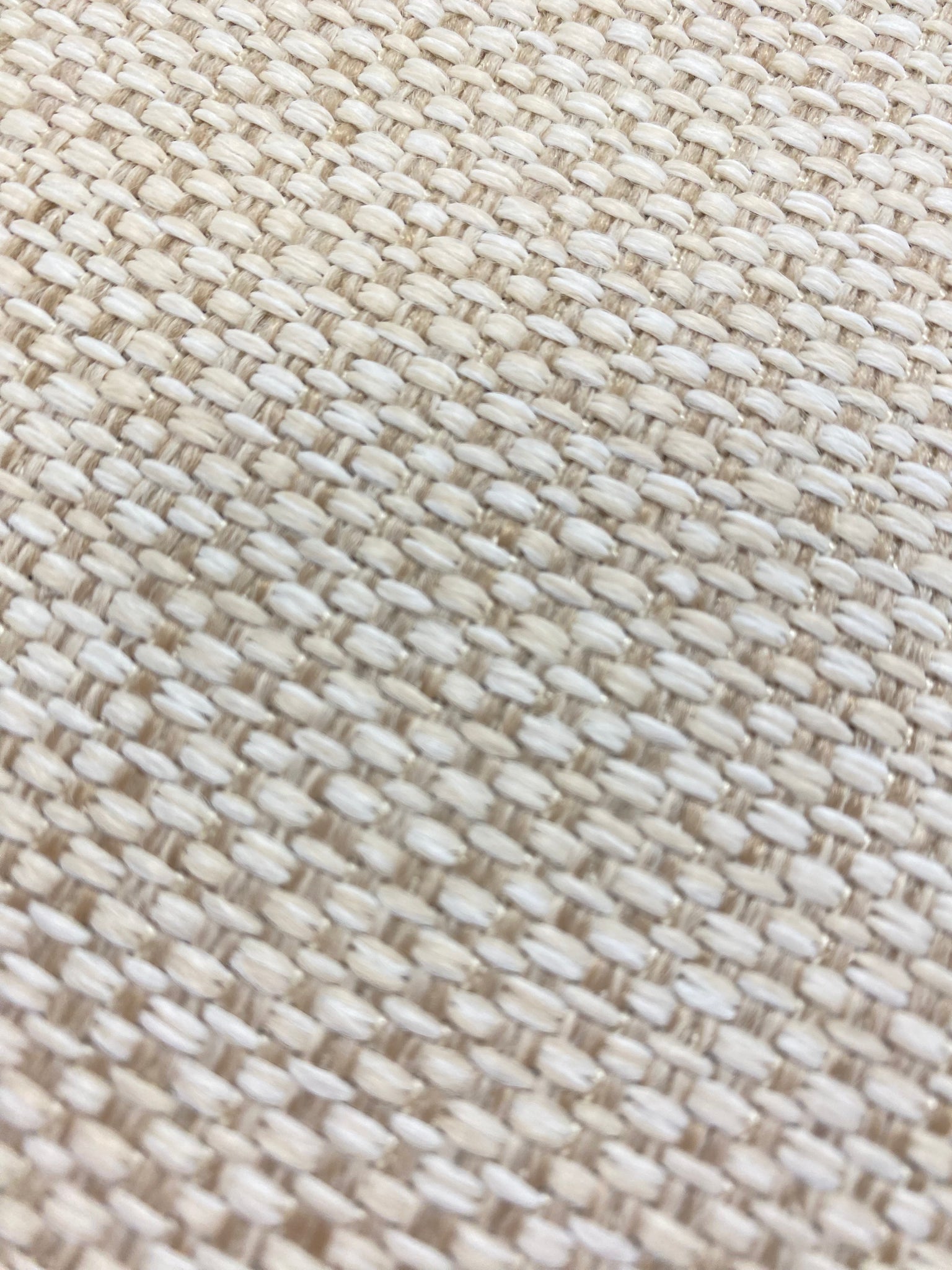 56" wide designer polypropylene MCM mid century modern woven tweed upholstery fabric in cream and beige. Price is per yard. Let us know if you need more than available in our store.