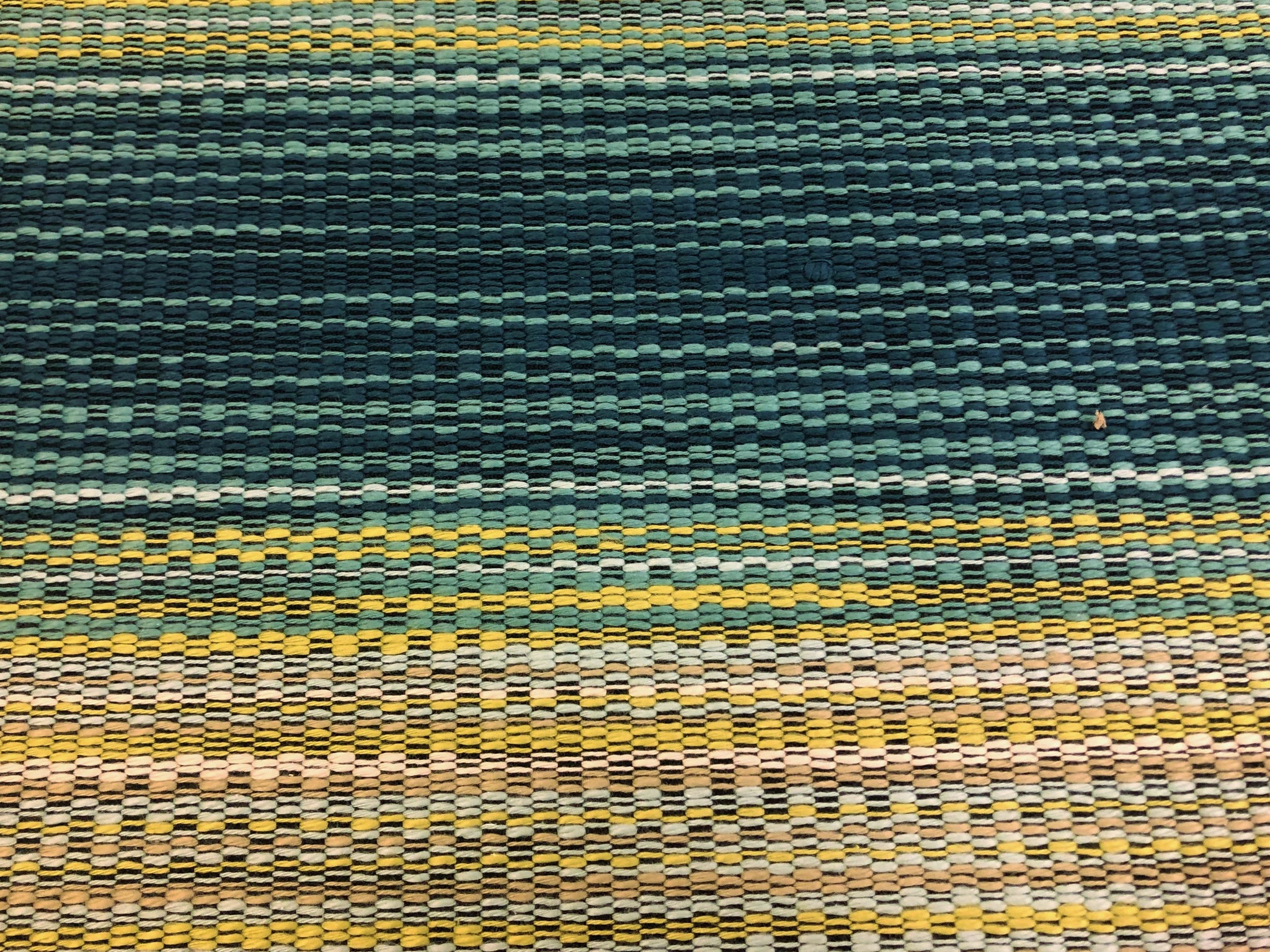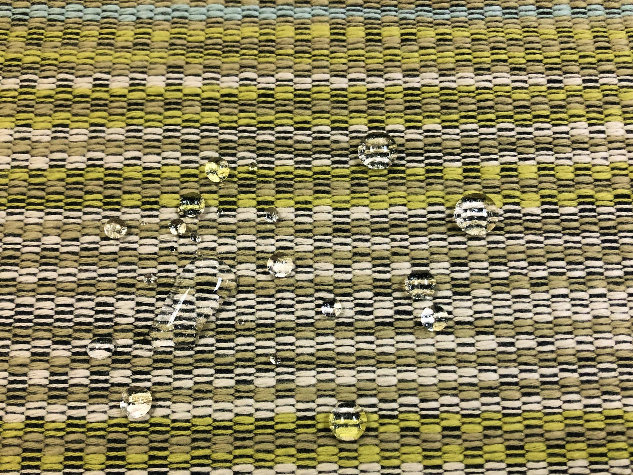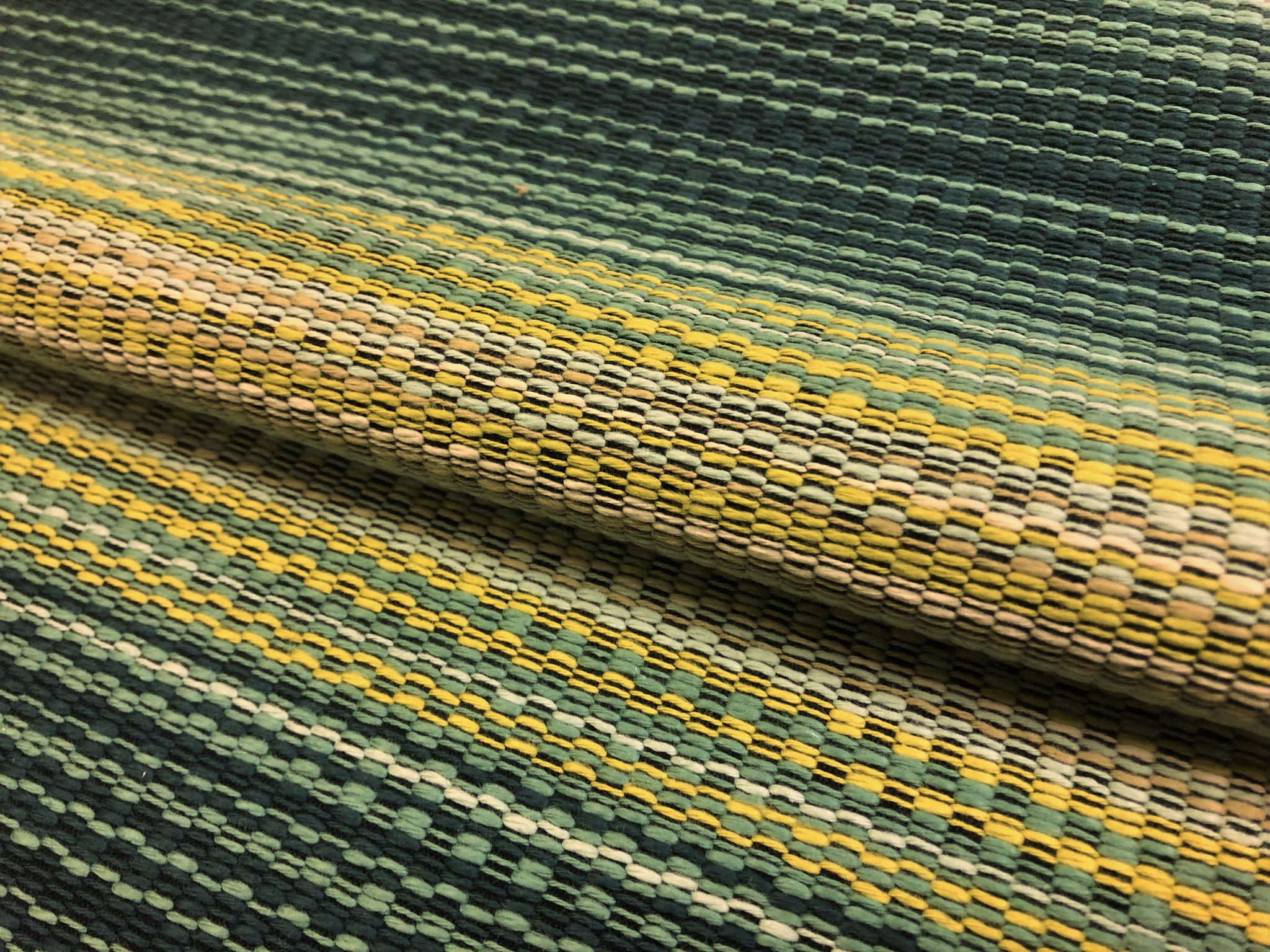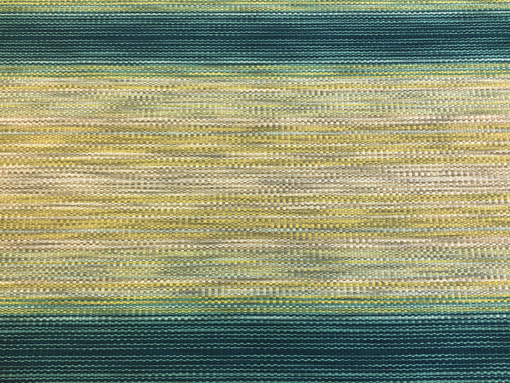 52" wide designer water & stain resistant woven ombre stripe upholstery fabric in green, navy blue, and beige. Price is per yard. Let us know if you need more than what is available in our store.