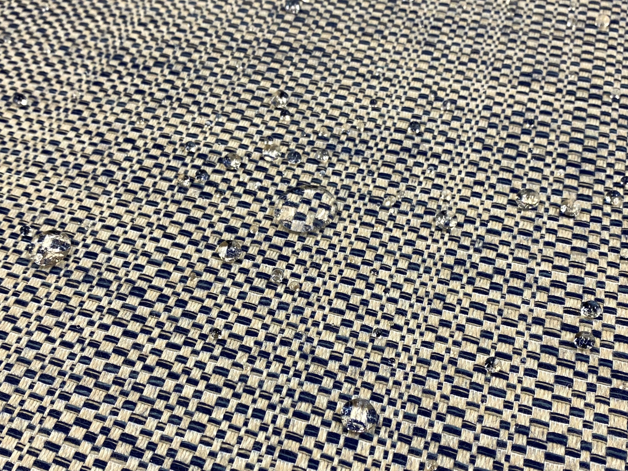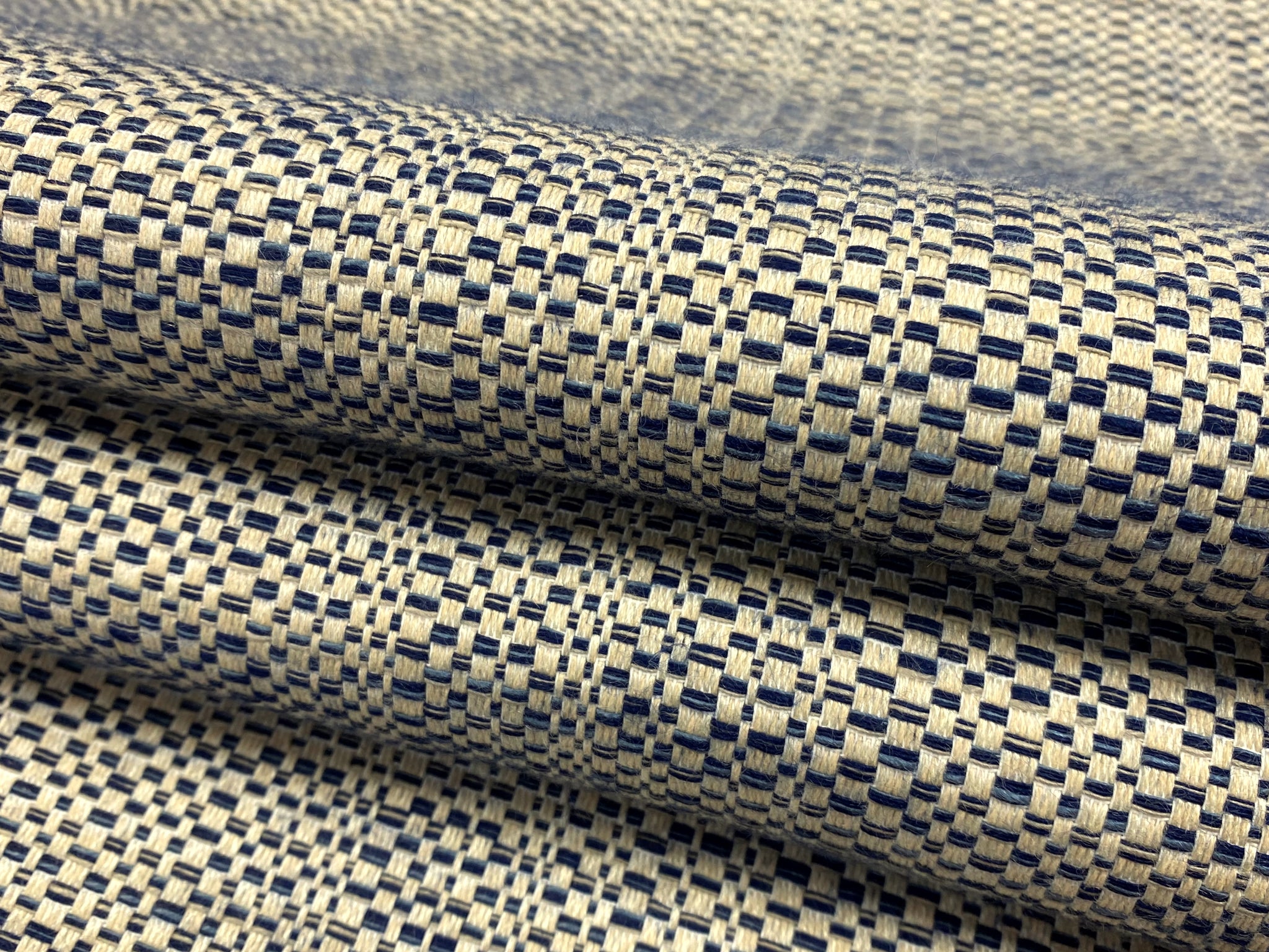 1 3/4 Yd Designer Water & Stain Resistant Navy Blue Beige Woven MCM Mid Century Modern Tweed Upholstery Fabric