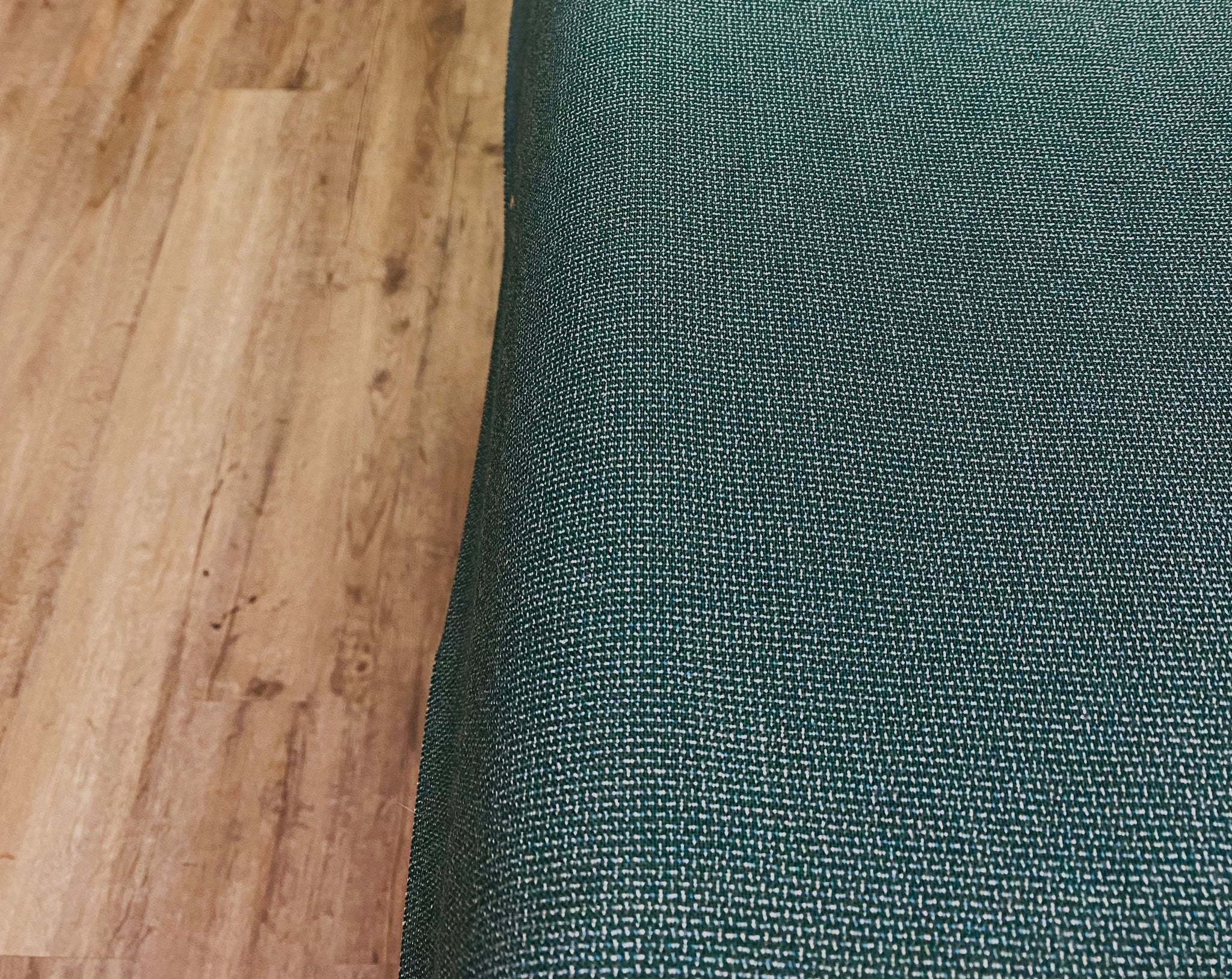 56" wide canvas MCM Mid Century Modern water & stain resistant tweed upholstery drapery fabric in forest green. Price is per yard. Let us know if you need more than what is available in our store.