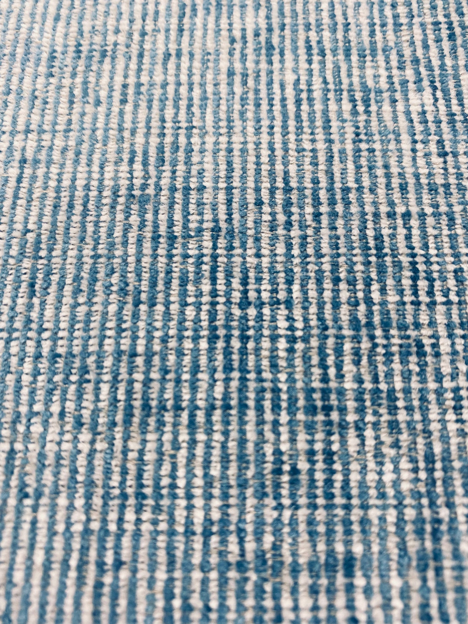 57" wide reversible strie chenille water & stain resistant upholstery fabric in French blue and beige. Price is per yard. Let us know if you need more than what is available in our store.
