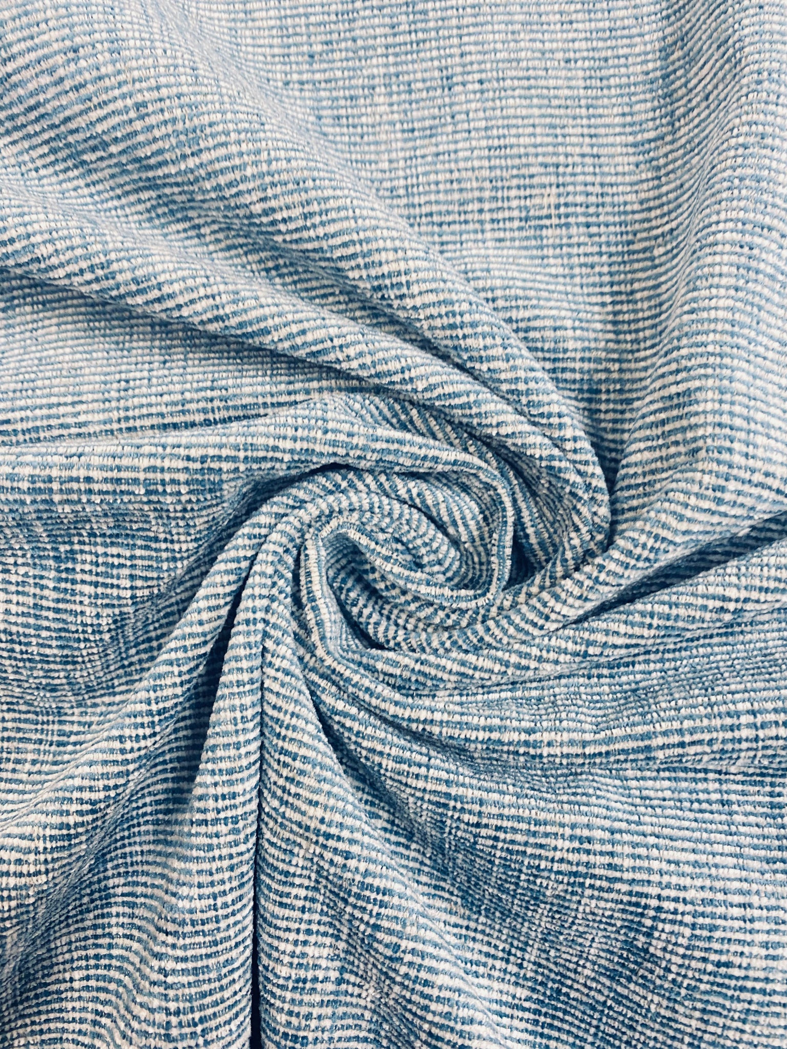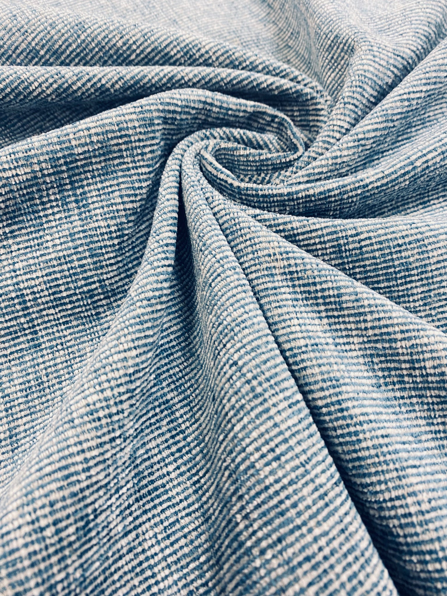 French Blue Beige Strie Chenille Water & Stain Resistant Upholstery Fabric WHS 3548