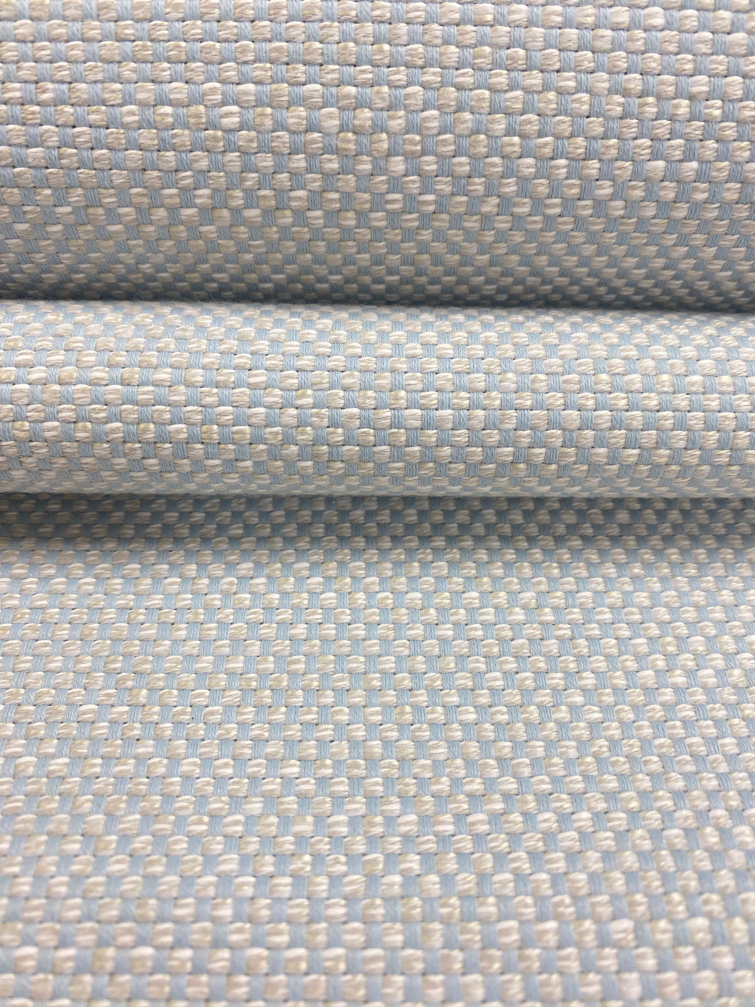 Width 55 Inches. Heavy duty indoor outdoor water & stain resistant upholstery fabric in beige and aqua blue. Price is per yard. Let us know if you need more than what is available in our store.