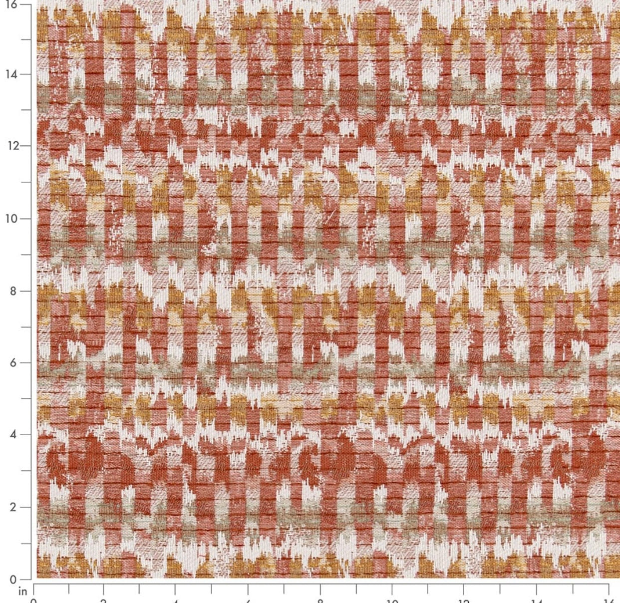 54" wide heavy duty kilim ikat upholstery fabric in rusty brown, mustard and green. Price is per yard. Let us know if you need more than what is available in our store.
