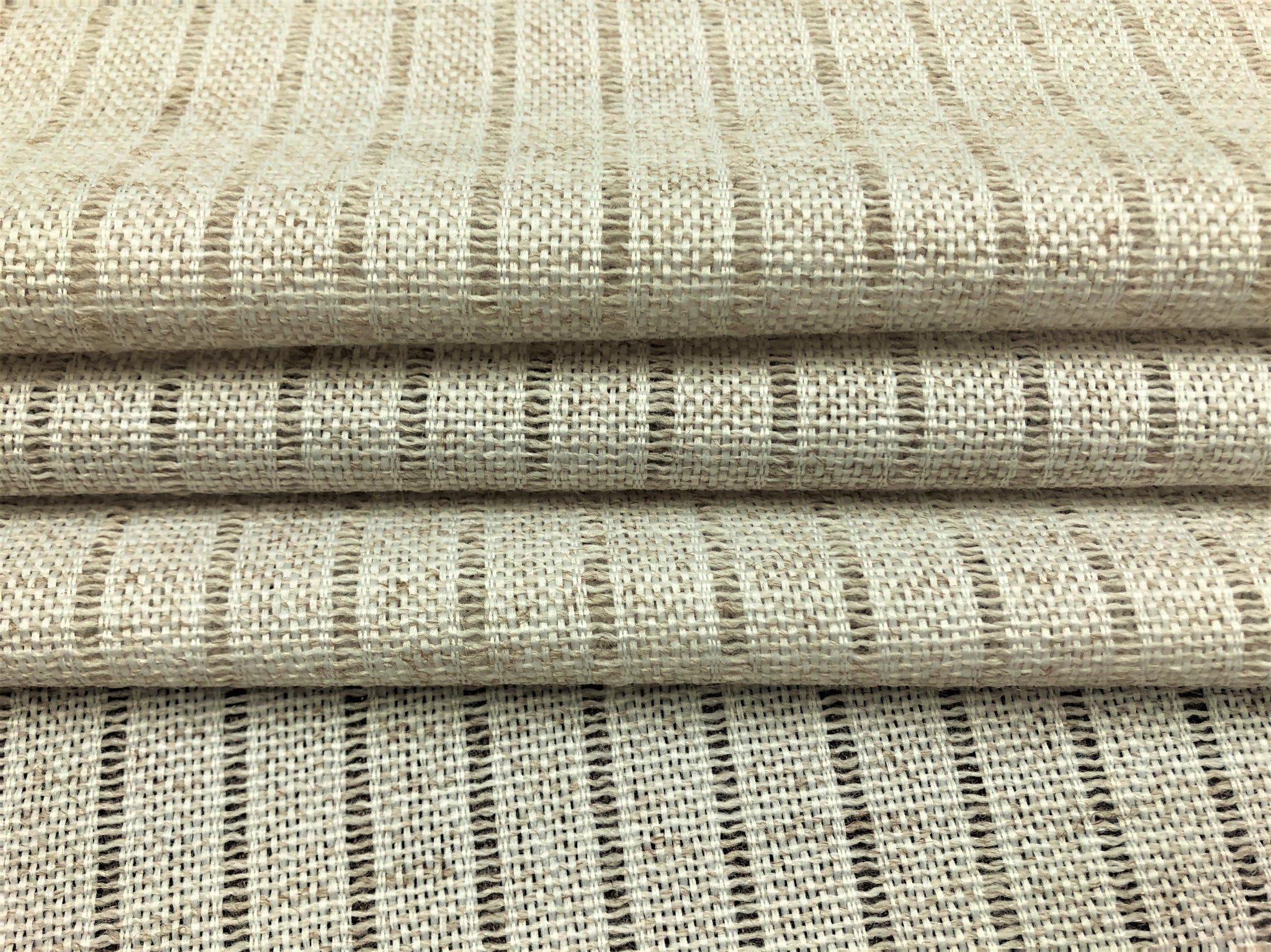 Natural Beige Oatmeal Semi Sheer Woven Stripe Drapery Fabric