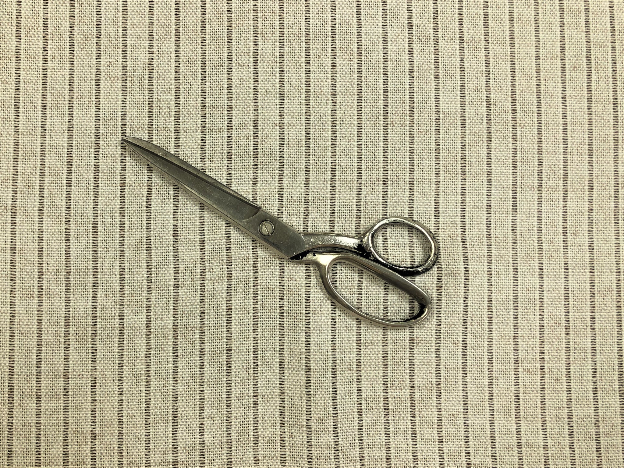 47" wide semi sheer woven stripe drapery fabric in a natural beige. Price is per yard. Let us know if you need more than what is available in our store.